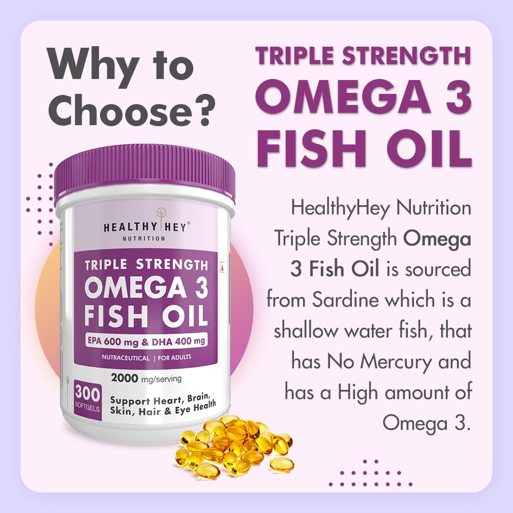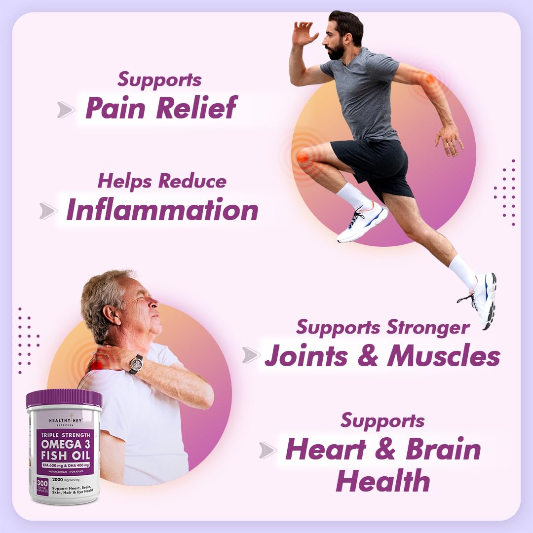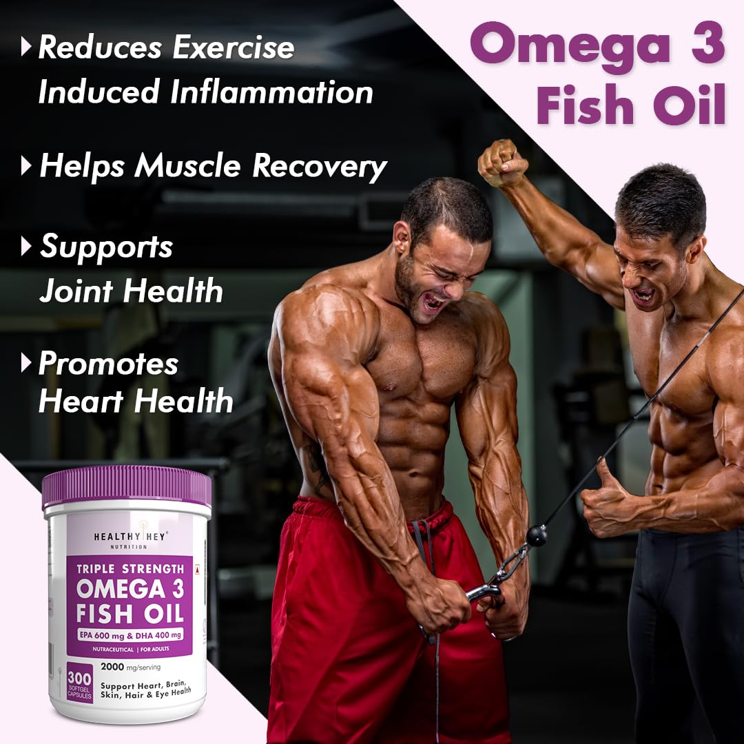HealthyHey Sports Omega 3 Fish Oil | Omega 3 Fish Oil Capsules For Women and Men - 300 Softgels (EPA 600 - DHA 400)