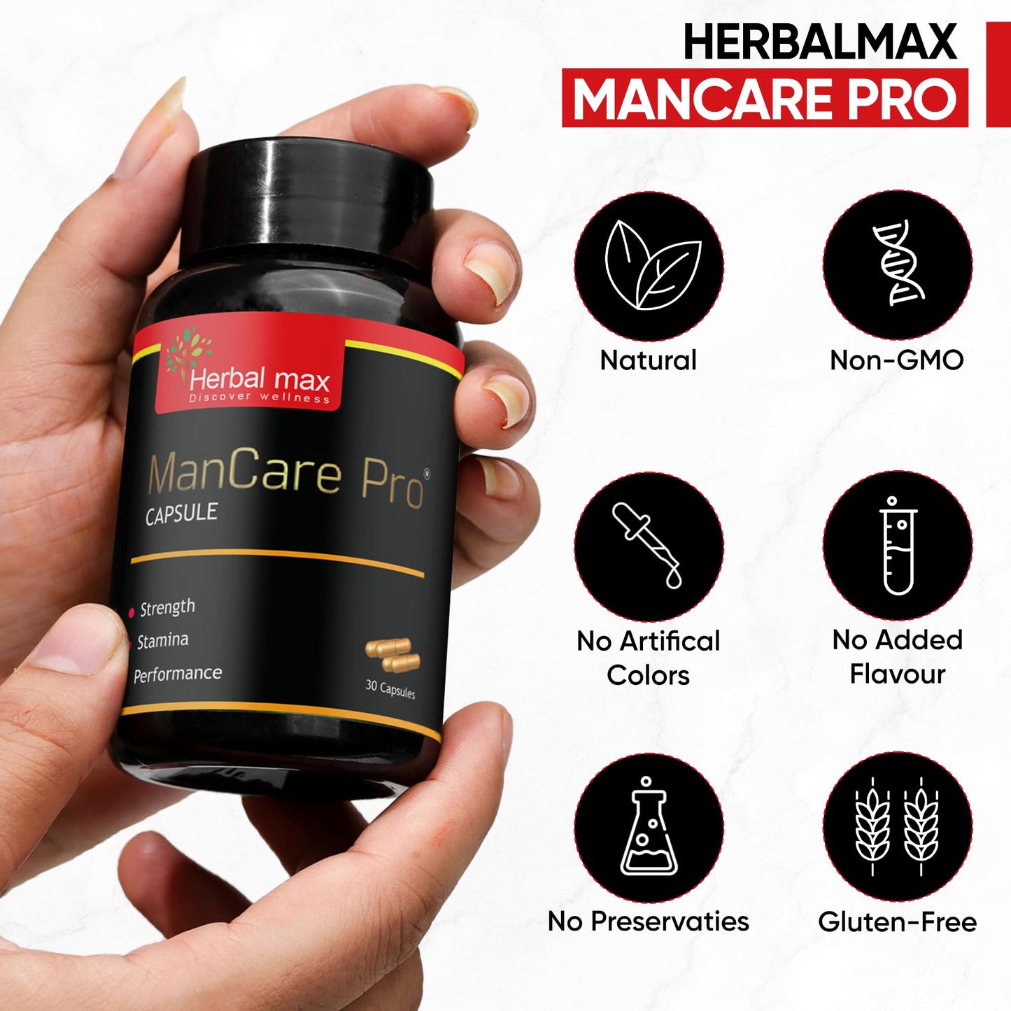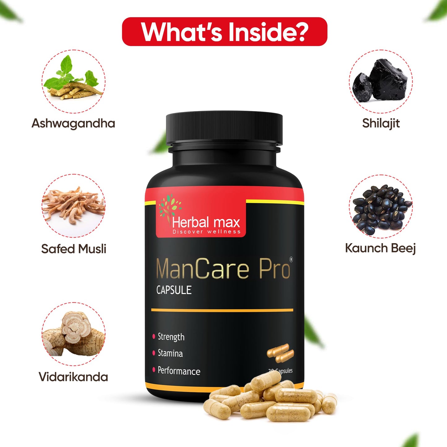 Herbal max ManCare Pro Capsule With Shilajit Ashwagandha, Vaidarikandra, Kaunch beej and Safed Musli Extract | 800mg | 30 Capsules