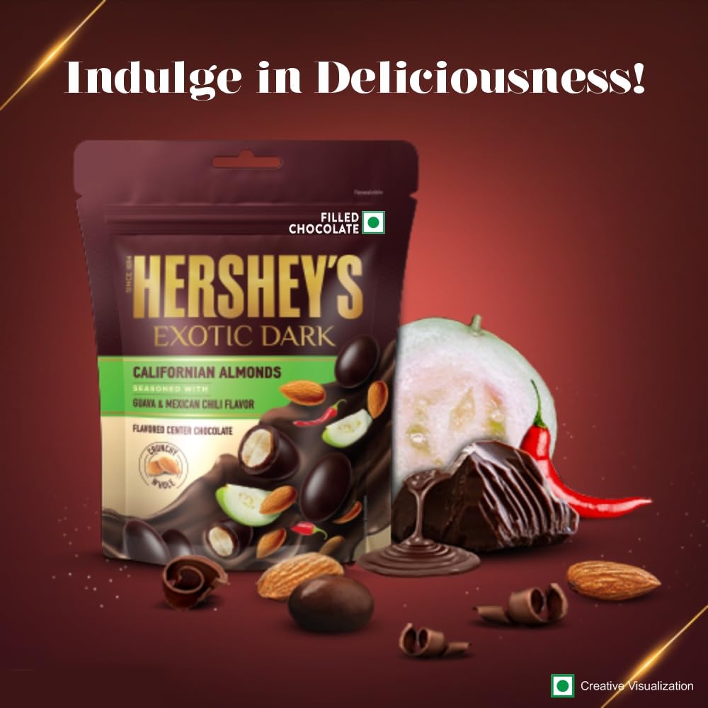 - Hershey's Exotic Dark - A unique combination of Dark coca rich chocolate & exotic flavored center. Every bite of Hershey's Exotic Dark is deliciously crafted to give a unique taste experience.