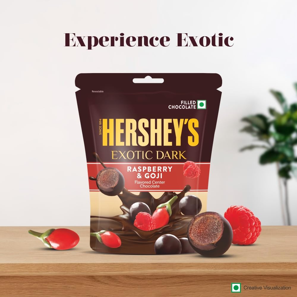 HERSHEY'S Exotic Dark Raspberry & Goji Flavor | Dark Cocoa Rich Chocolates 100g - Pack of 2