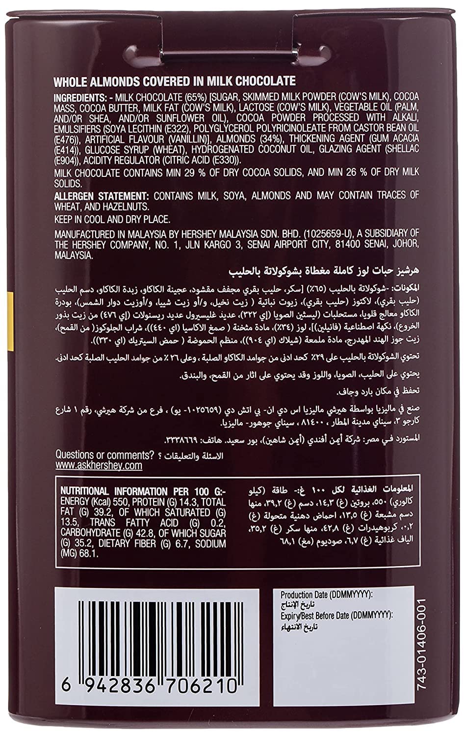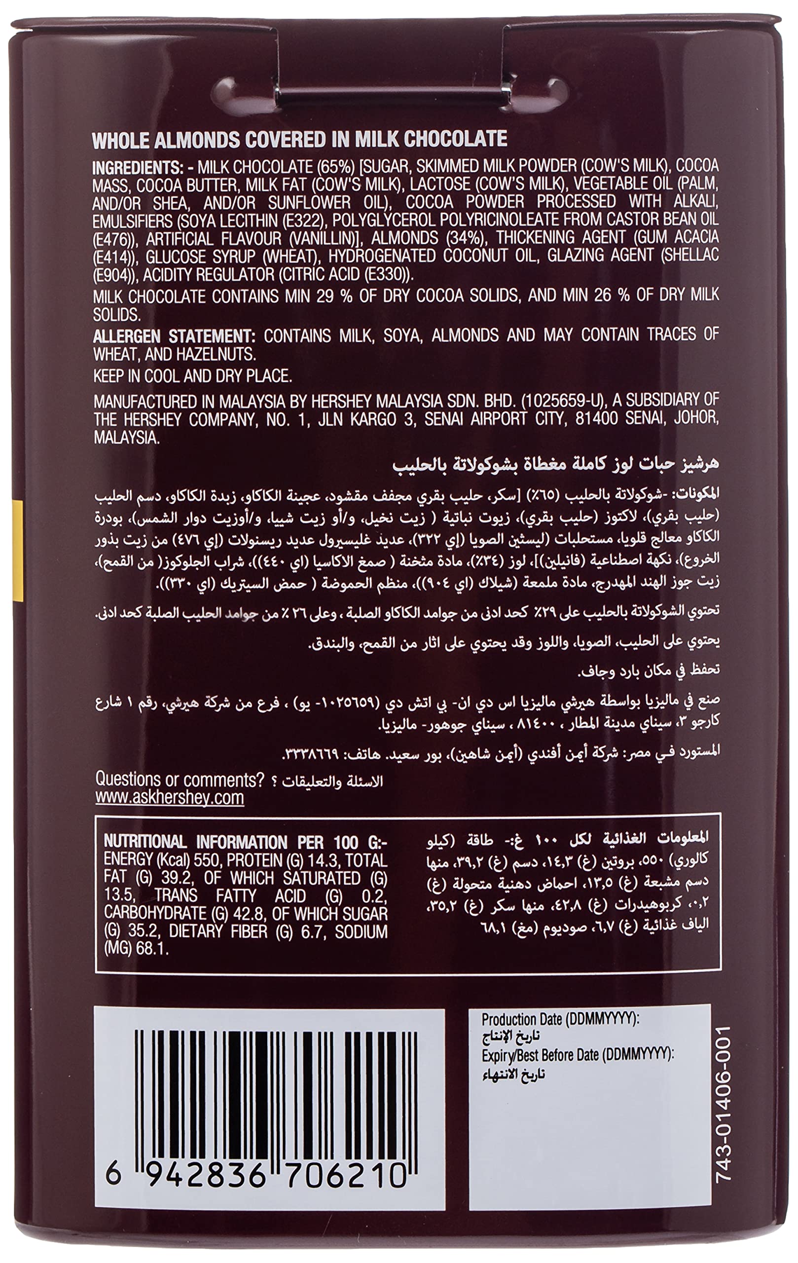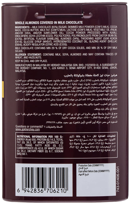 Hershey's Whole Almonds Covered in Creamy Milk Chocolate, 60 g