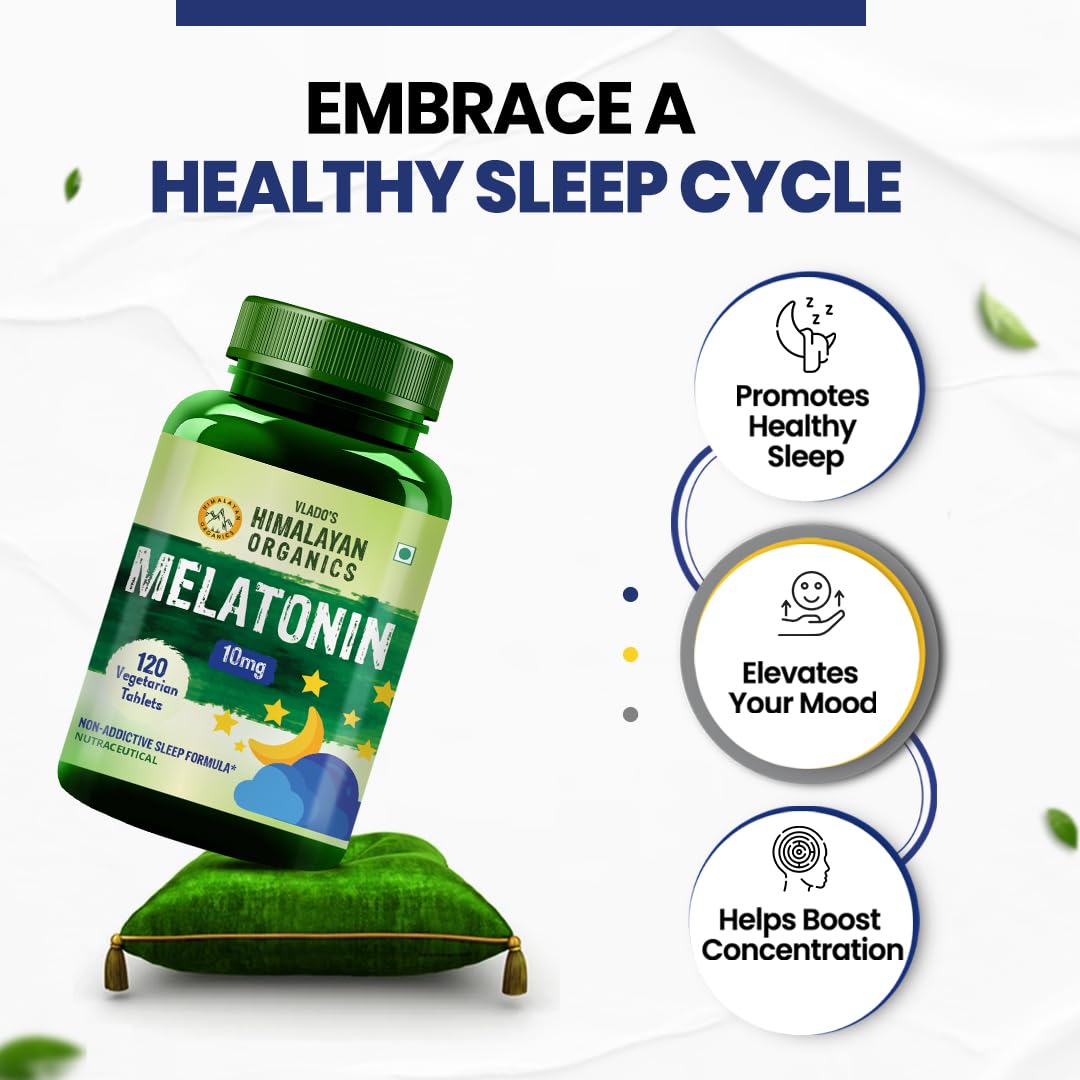 - OTHER BENEFITS: Apart from an improved sleep cycle, eye health, and cheerful mood, Himalayan Organics Melatonin Tablets are a host to other perks like managing immune functions, blood pressure, and cortisol levels. With so many benefits, it is bound to make you (helps you feel) refreshed and improve (enhance) your performance.