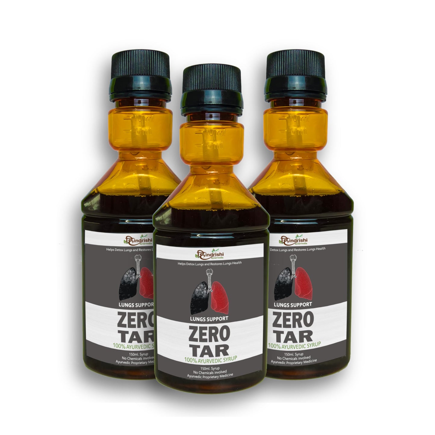 Hindrishi Ayurveda Zero Tar Syrup for Lungs Detox - Removes Tar from Lungs and Liver Set of 3