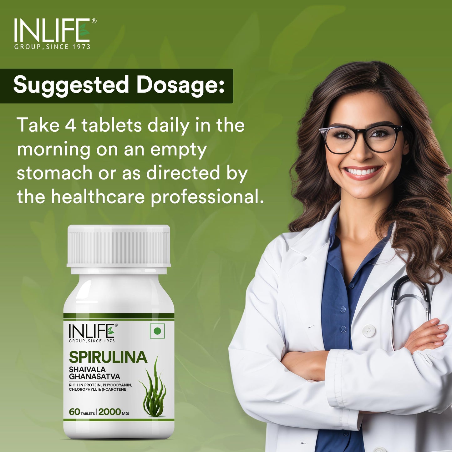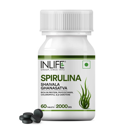 INLIFE Organic Certified Spirulina Supplement 500 mg - 60 Vegetarian Capsules