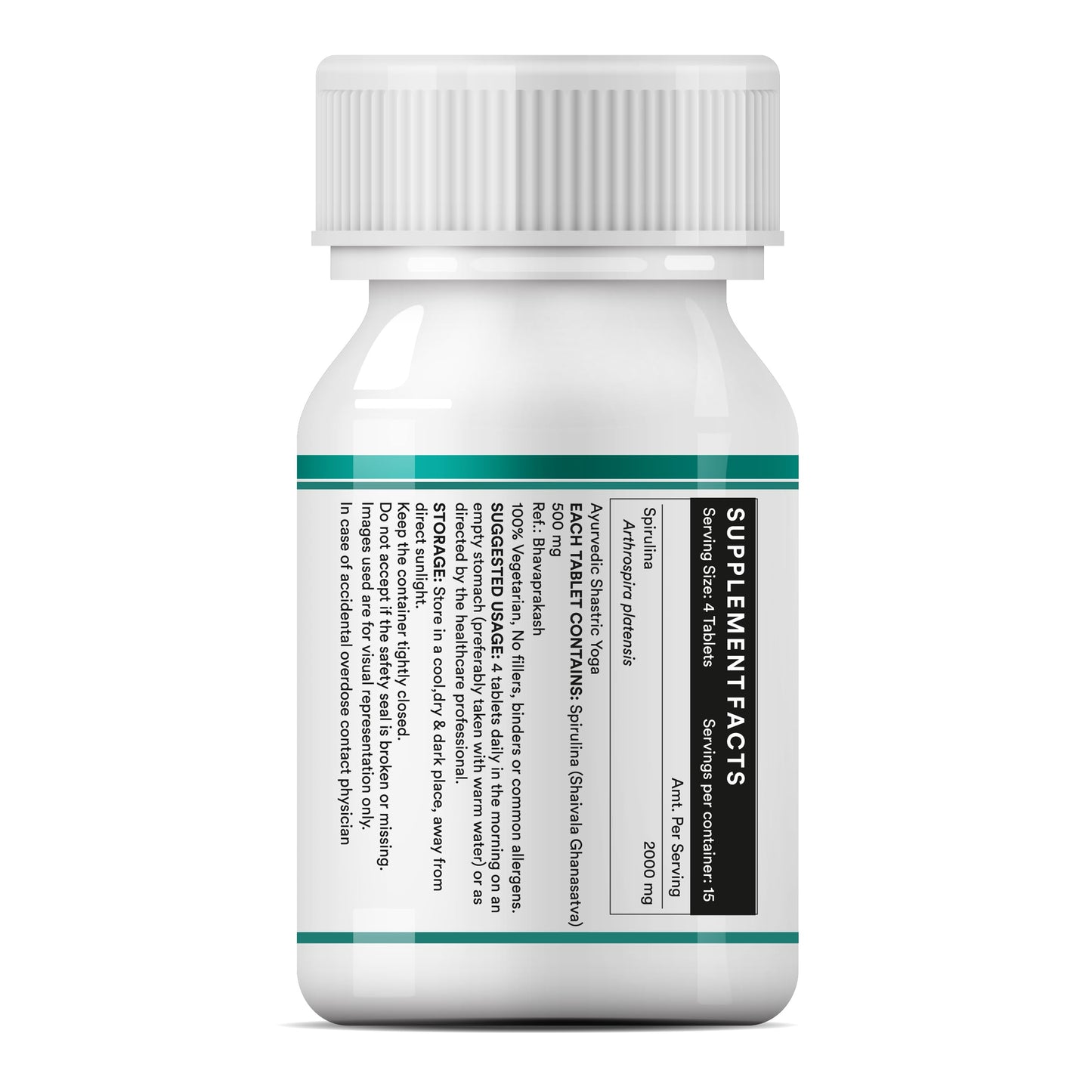 - 500 mg pure spirulina extract per capsule
