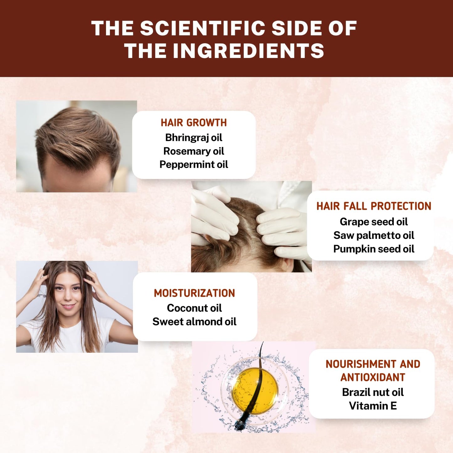 - HAIR SERUM FOR HAIR LOSS: Pumpkin seed, Brazil nut, and Bhringraj hair growth oils contain essential micronutrients such as selenium and vitamin E and provide deep moisturization to the scalp for reducing hair loss.
