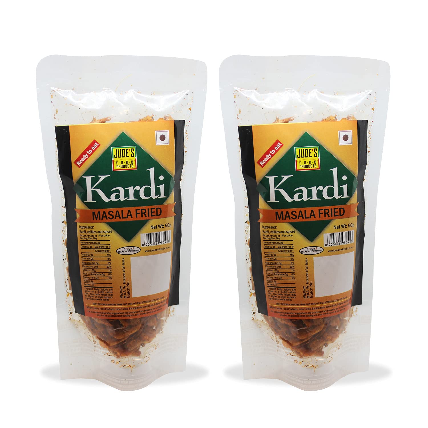 Jude's Food Products - Masala Fried Kardi | Dried Sea Prawns, Seafood |Cleaned & Cooked with Spices | Ready to Eat | No Added Color, Flavors | Dried Fish Snack, Food Accompaniment | Pack of 2 x 50 gms