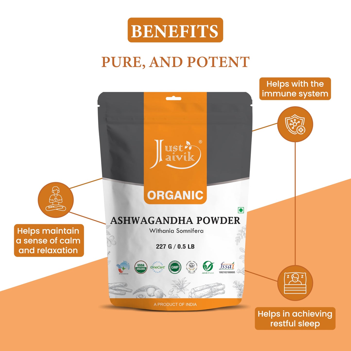 Just Jaivik Organic Ashwagandha Root Powder - 227g