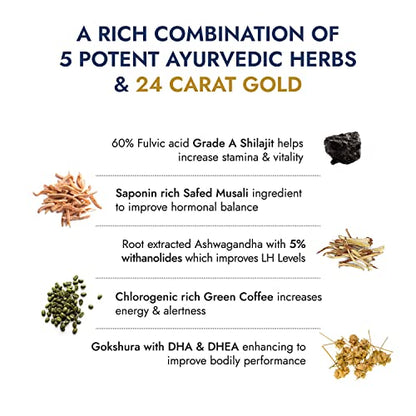 - CONTAINS NO NASTIES: Premium quality ingredients. Grade A Shilajit, 24 Carat Gold, Nagori Ashwagandha & Super Coffee Arabica