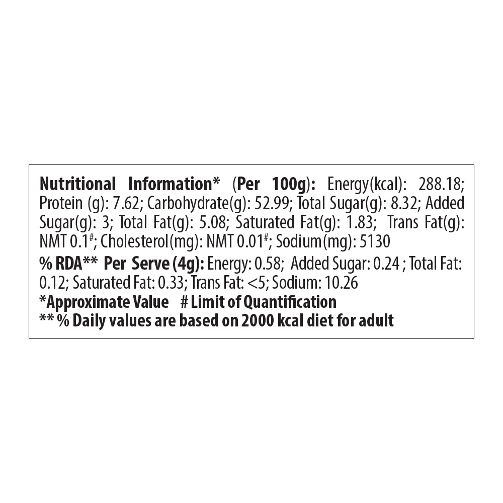 - No preservatives, no fillers, no additives, no anti-caking agents, no MSG