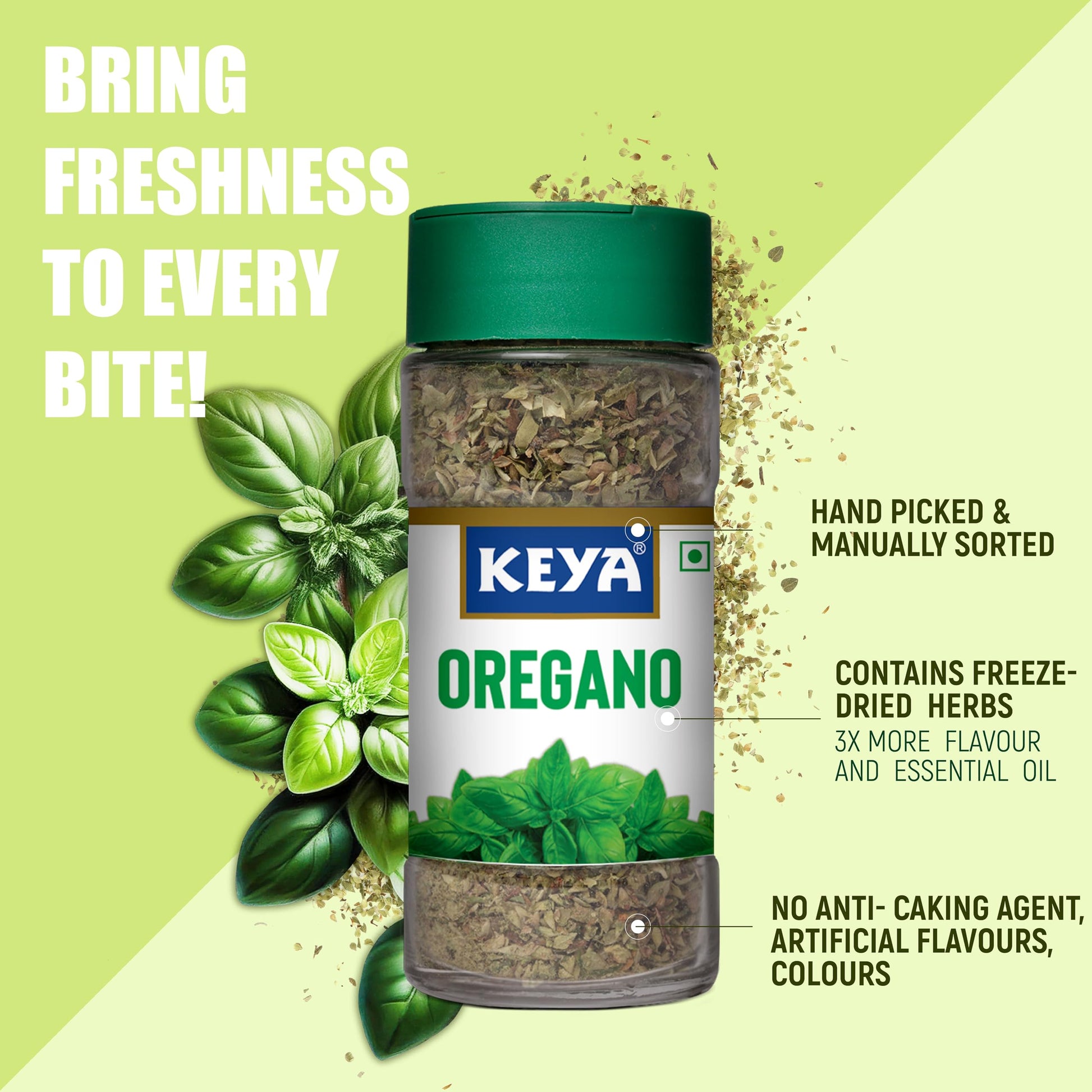 Keya Oregano | Freeze Dried | Seasoning For Pizza, Pasta, Marinades And Soups | No Artificial Flavours And Colours | Sprinkler |15g/9g