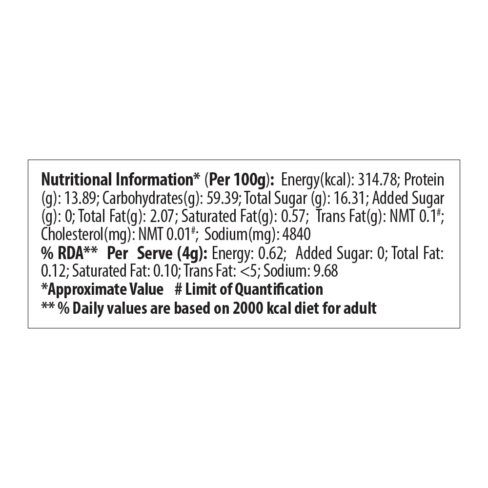 - No preservatives, no fillers, no additives, no anti-caking agents, no MSG