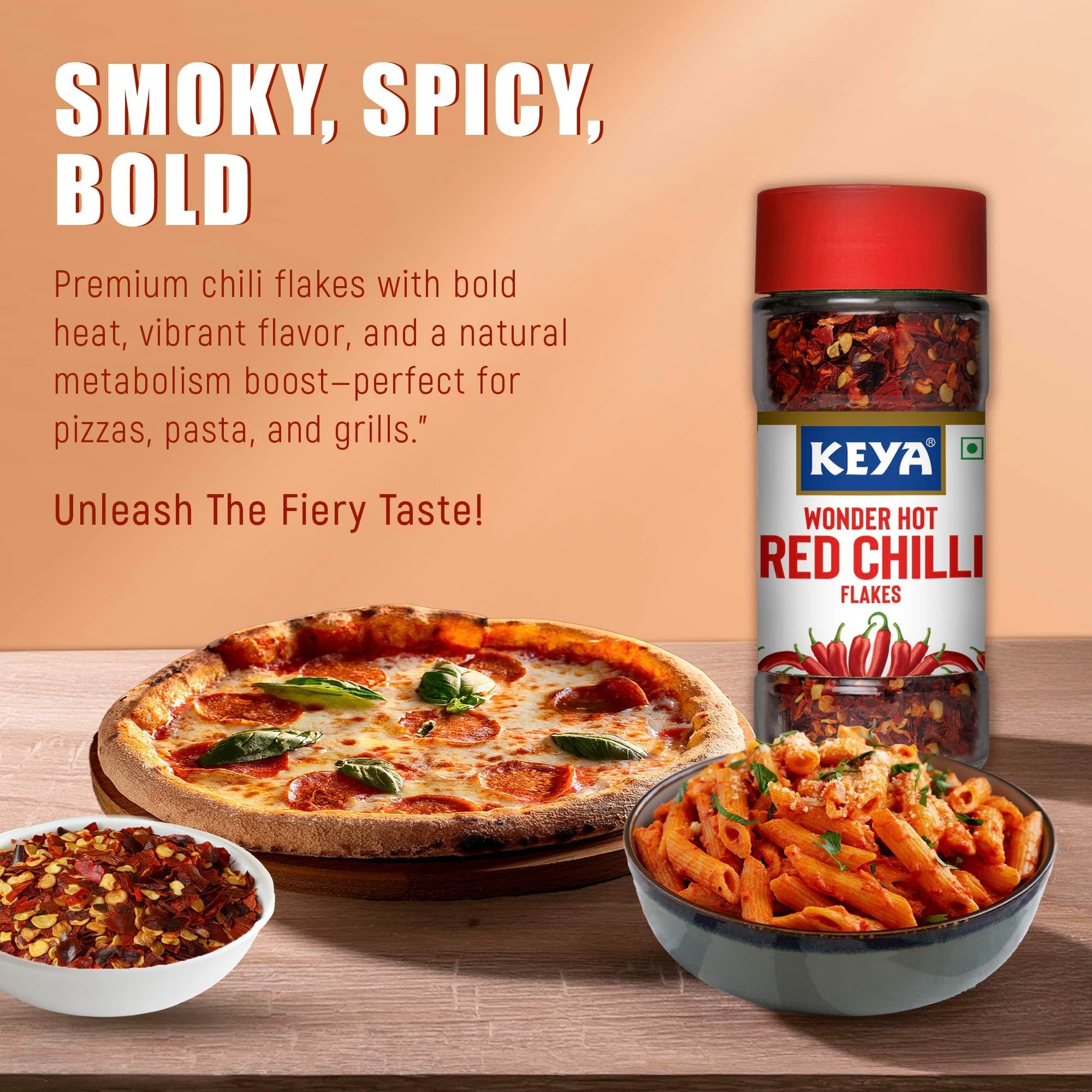 Keya Red Chilli Flakes | Dry Red Chilli Flakes Seasonings | Aromatic Spicy Dried Pizza Pasta Seasoning | Zero added Colours, Fillers, Additives & Preservatives | 100% Natural | 40gm