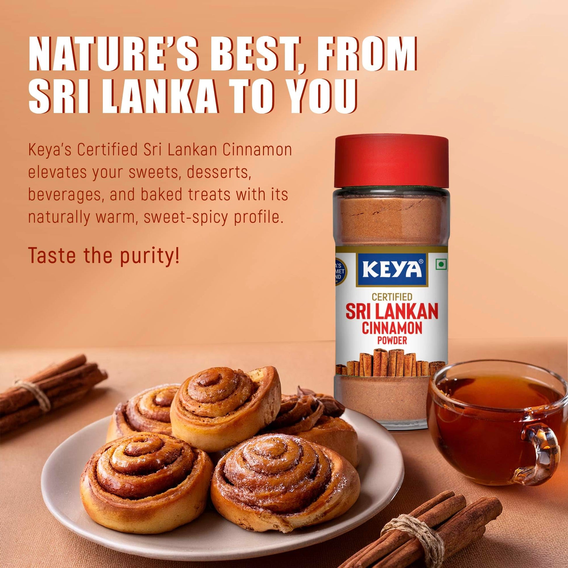 Keya Srilankan Certified Cinnamon Powder | Dalchini Powder | Ceylon Cinnamon | Non Cassia | Sourced from Sri Lanka | 100% Pure & Natural | Packed with Zero Preservatives or Additives | Indian Spices Aroma & Flavour | 45g