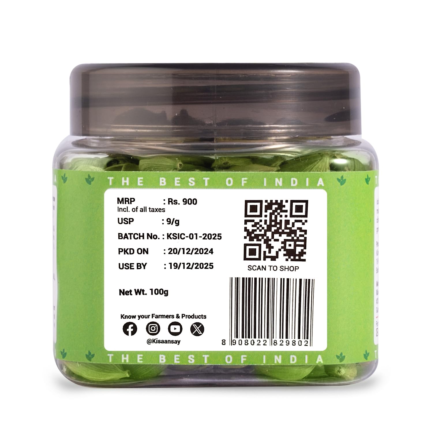 KisaanSay Idukki Cardamom 100 gm | Bold Size (7 to 8 mm) | Natural Elaichi | Distinctive Flavour & Aroma | No Artificial Colors | elaichi green