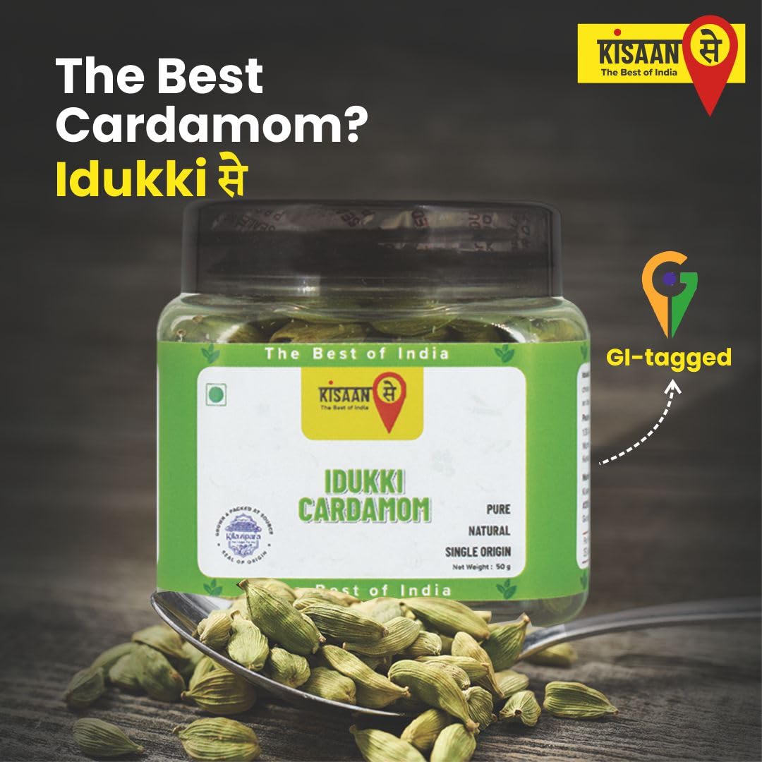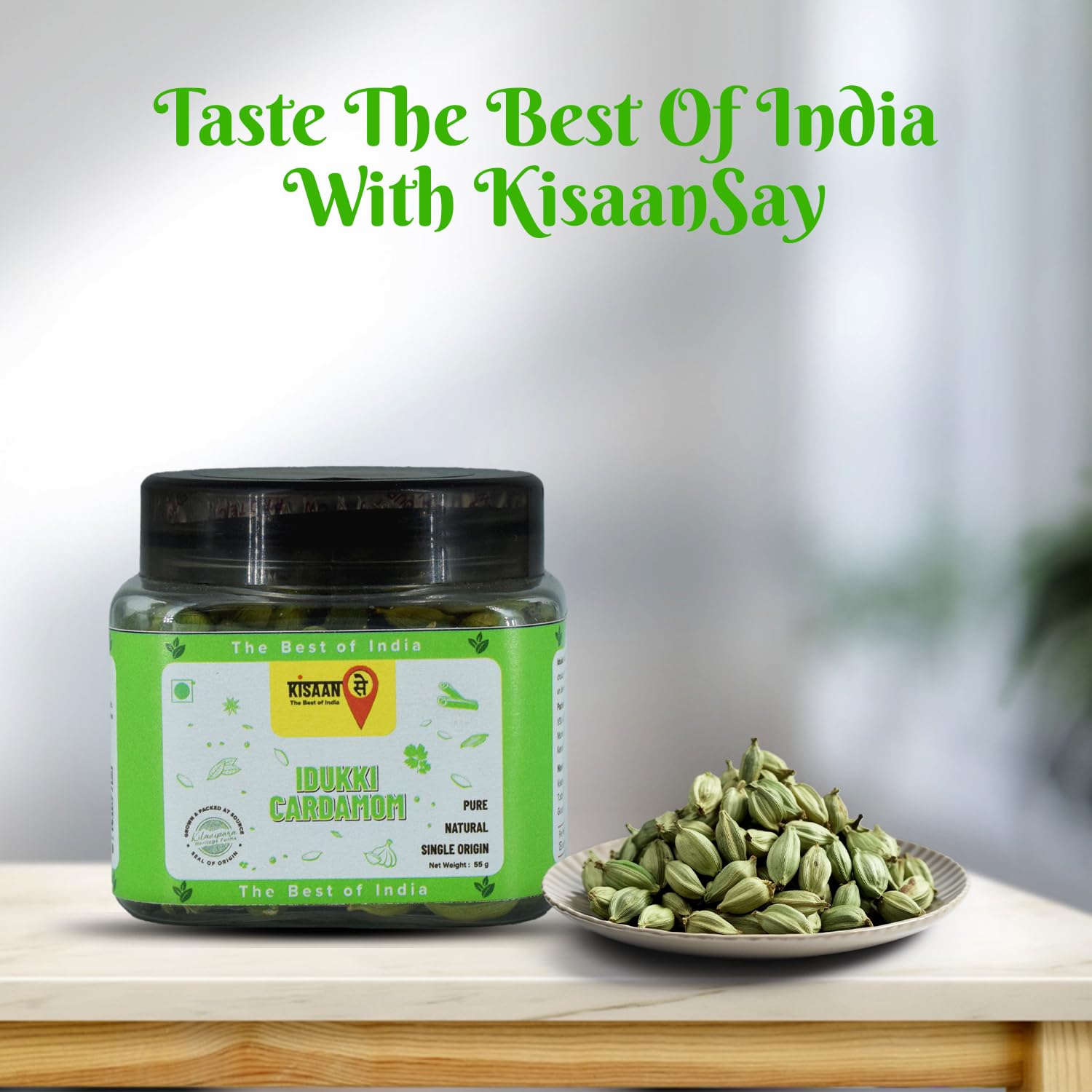 KisaanSay Idukki Cardamom 50 gm Bold Size (7 to 8 mm) | Bold Size | Pure Elaichi | Natural | Distinctive Flavour & Aroma | No Artificial Colors