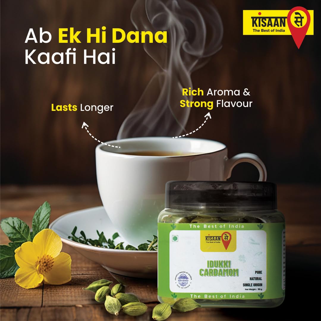 - Distinctive Flavor & Aroma: KisaanSay Idukki Cardamom boasts a rich and distinctive flavor profile, enhancing the taste of dishes and beverages.