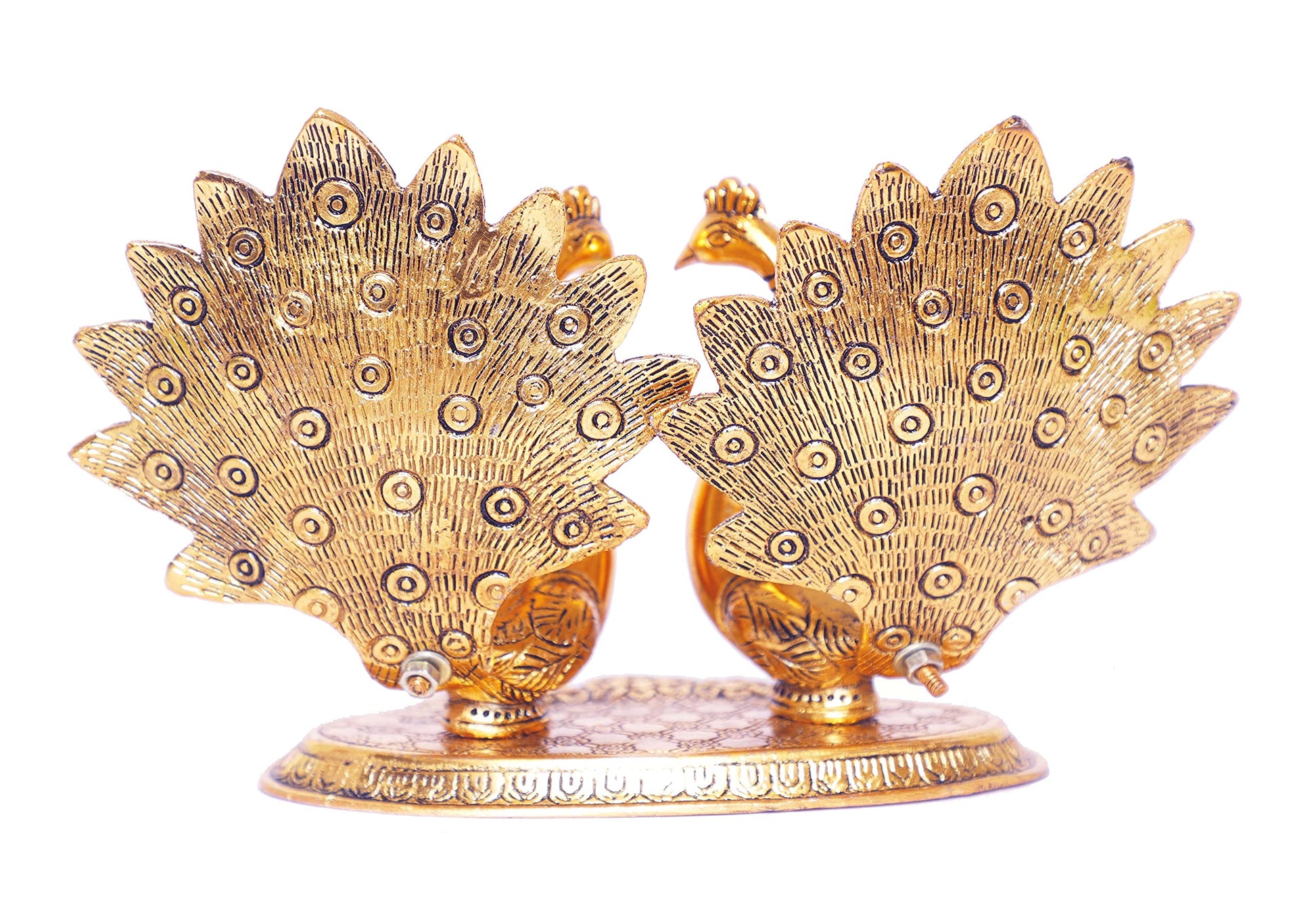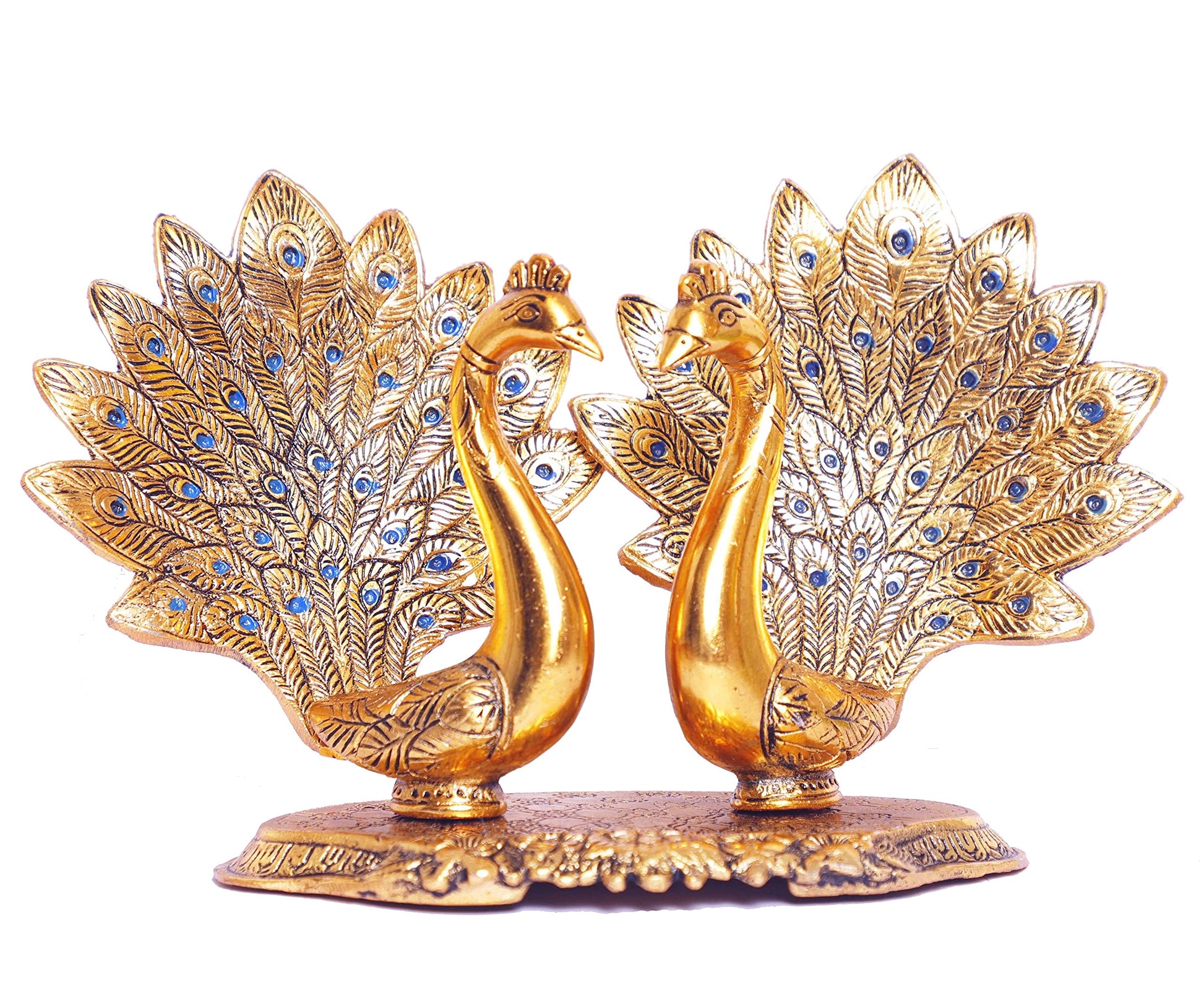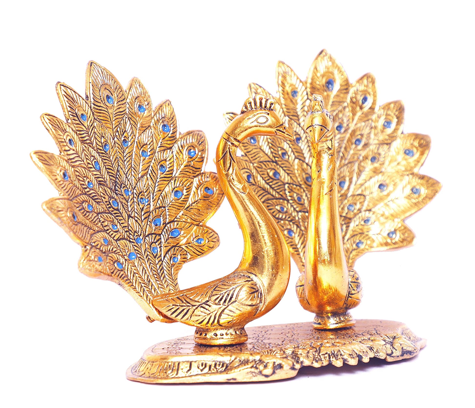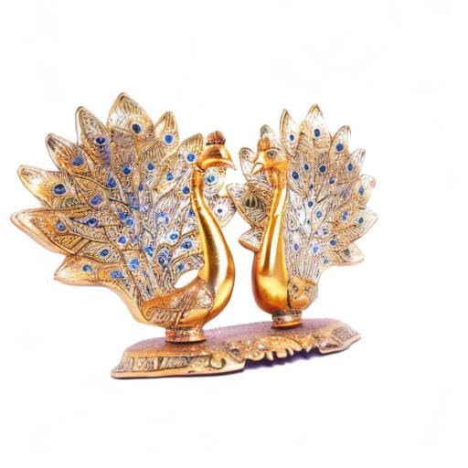 KridayKraft Metal Double Lovers Peacock Statue, Showpiece Figurine- Standard, Gold