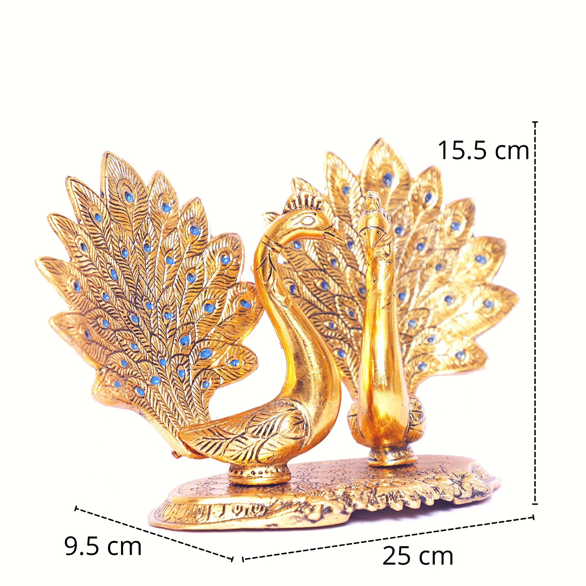 - Metal Peacock Couple Staute :- Size- (LXWXH) 25 X 9.5 X 15.5 CM | Weight- 570 Grams | Material:Metal (Aluminium) | Color :-Gold
