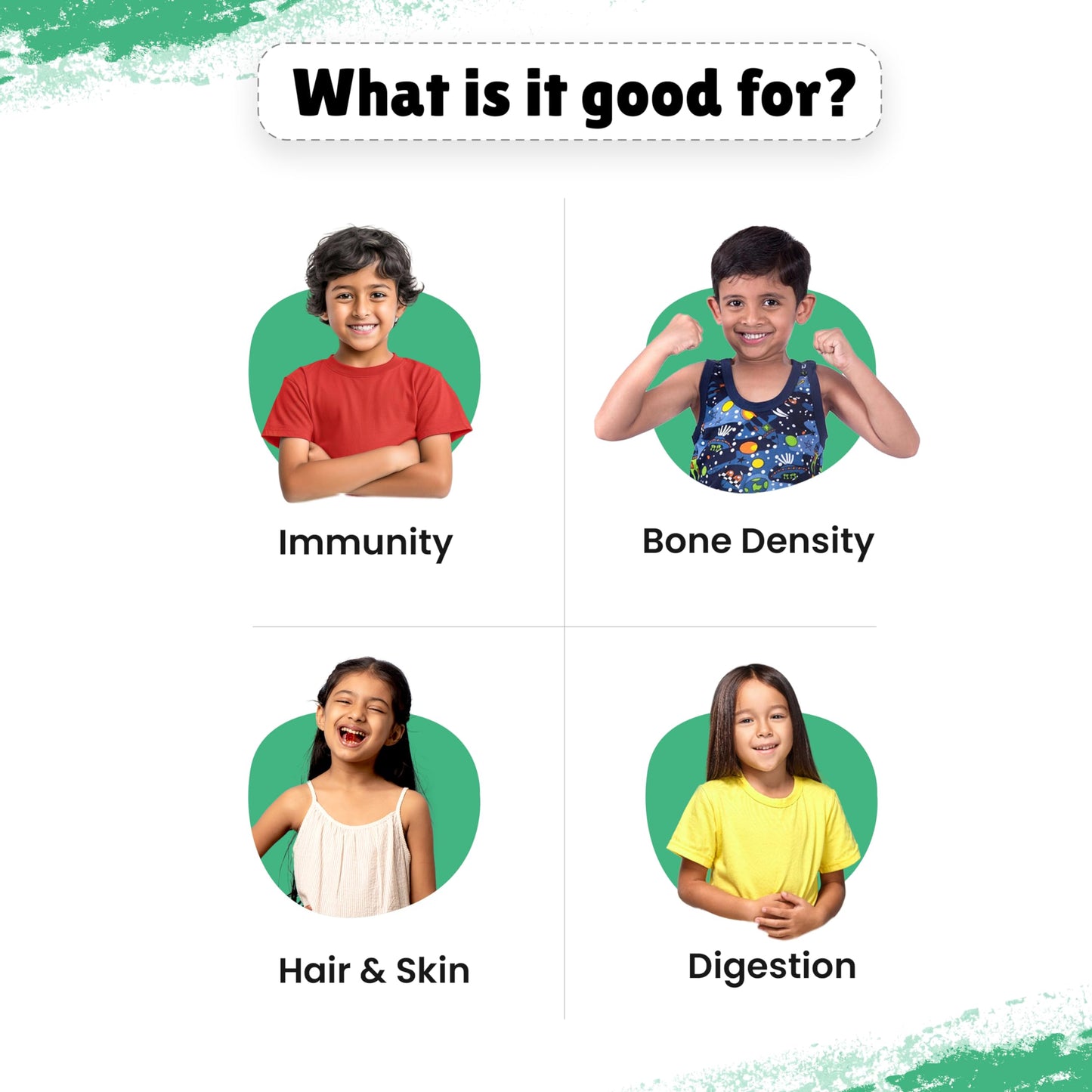 - NO ADDED SUGAR: These gummies for kids contains no added sugar and no artificial colours, falvours or preservatives.