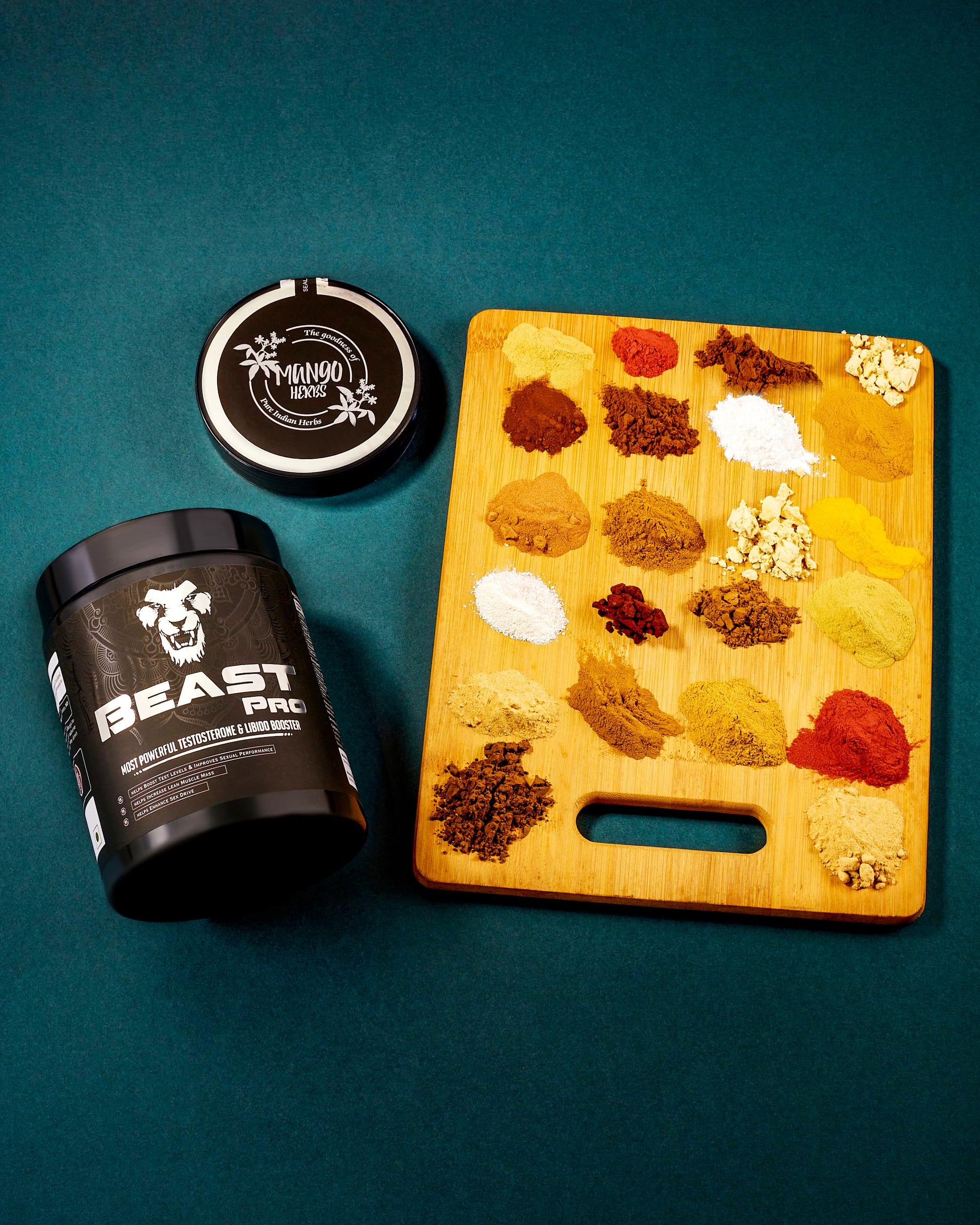 MANGO HERBS Beast Pro: Powerful Testosterone Booster for Men|Natural Libido Enhancer|Supports Strength,Stamina & Vitality|Ayurvedic Proprietary Medicine|Vegetarian,Powder,1 count,150 grams