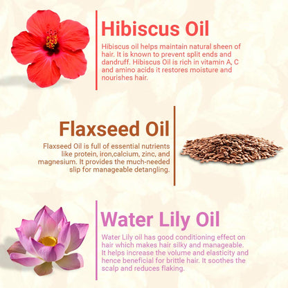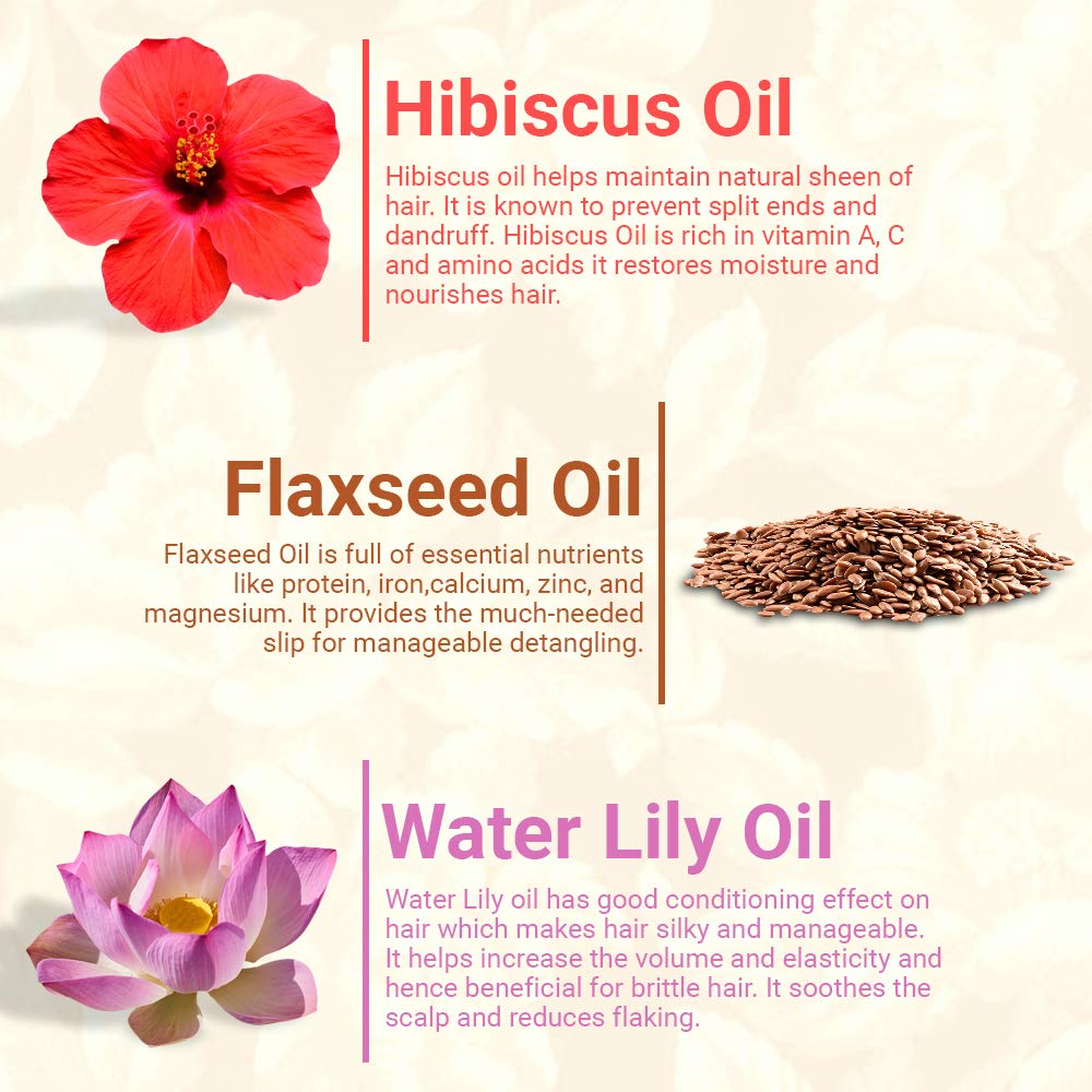 - ✔️Adds shine and controls frizz. Makes hair manageable and gives every strand a silky shine with Hibiscus Oil, Flaxseed Oil and Water Lily