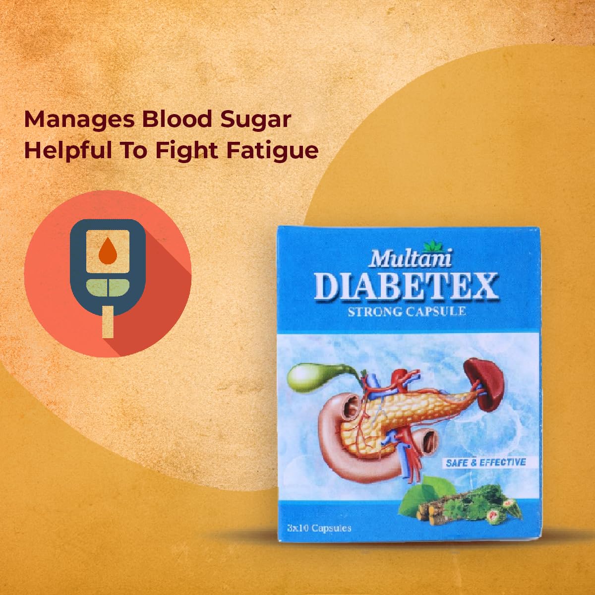 - 【Manages Blood Sugar】: Multani Diabetex Strong Capsule Is Helpful To Greater Energy Levels, Because Of Powerful Combination Of Natural & Ayurvedic Ingredients, Multani Diabetex Helps To Manage Cholesterol Levels Of Body.