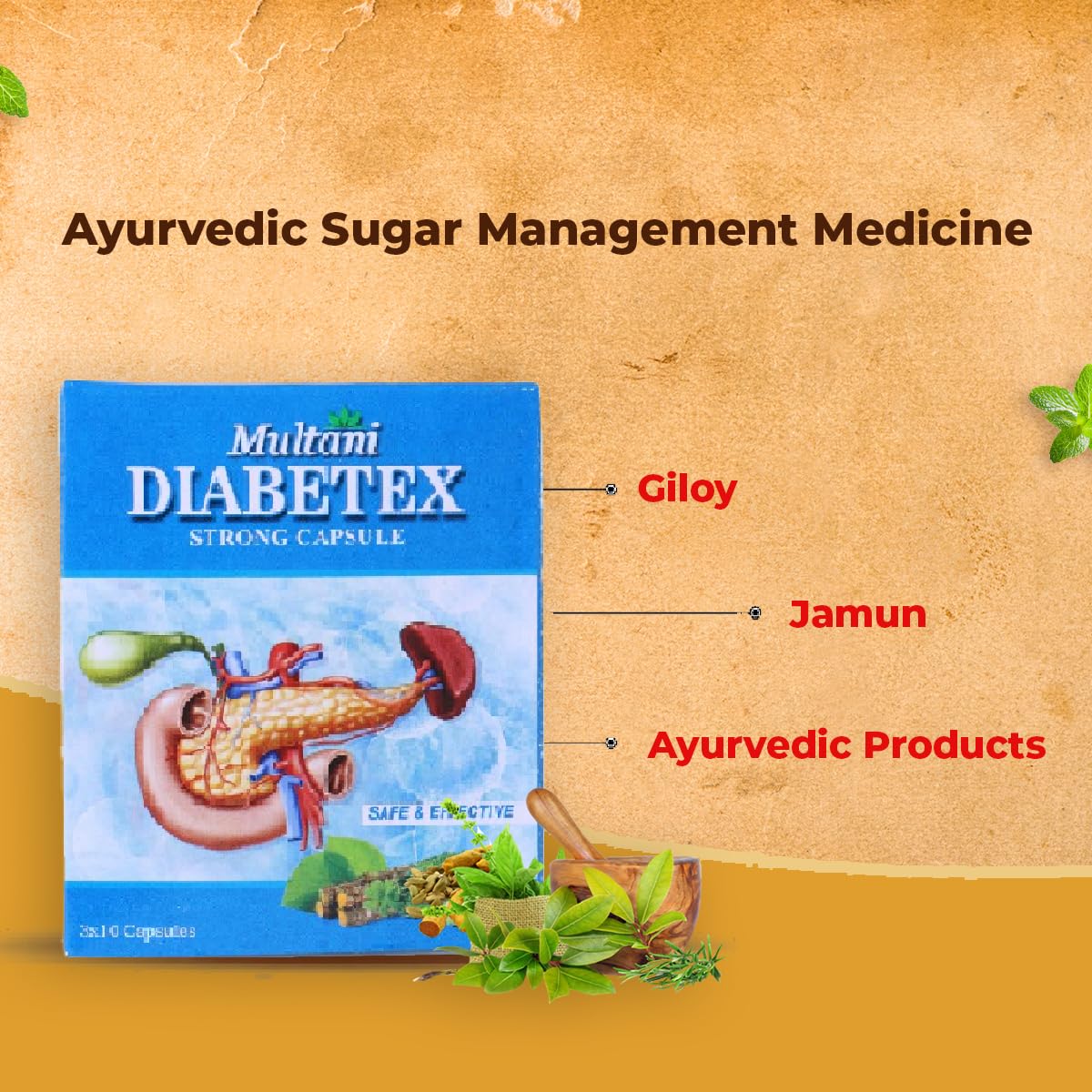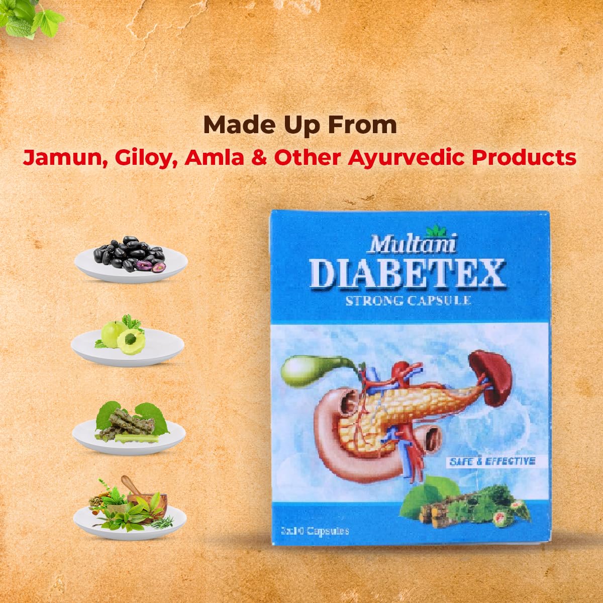 - 【Just Ayurvedic】: Multani Diabetex Strong Capsule Contains Karela & Jamun Which Have Been Known As Ayurvedic Remedies That Have Proven To Help Blood Sugar Levels. Whether You're Seeking To Live A Ayurvedic Lifestyle Or Just Trusting In Mother Nature, Multani Is The Original Choice For Your Ayurvedic Products.