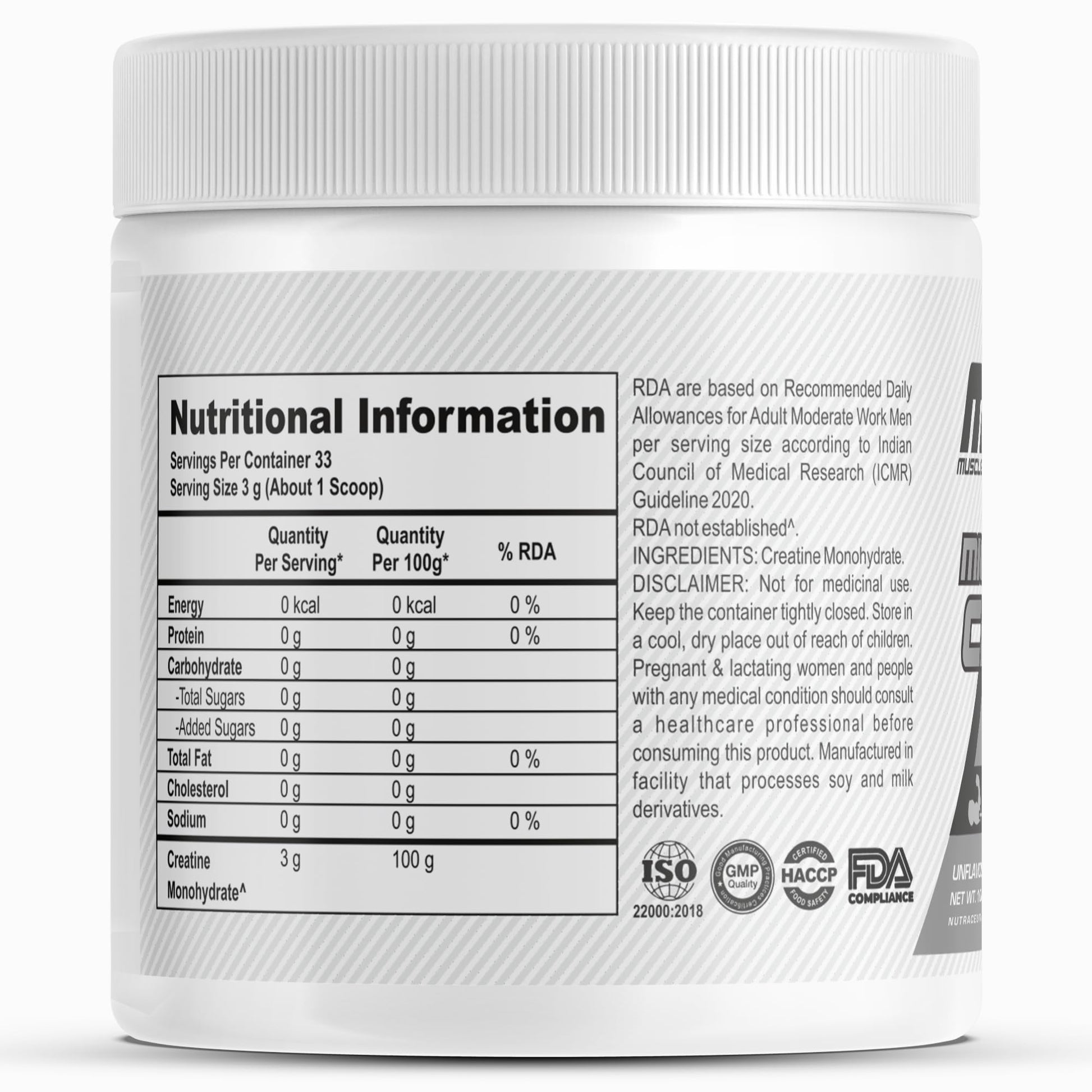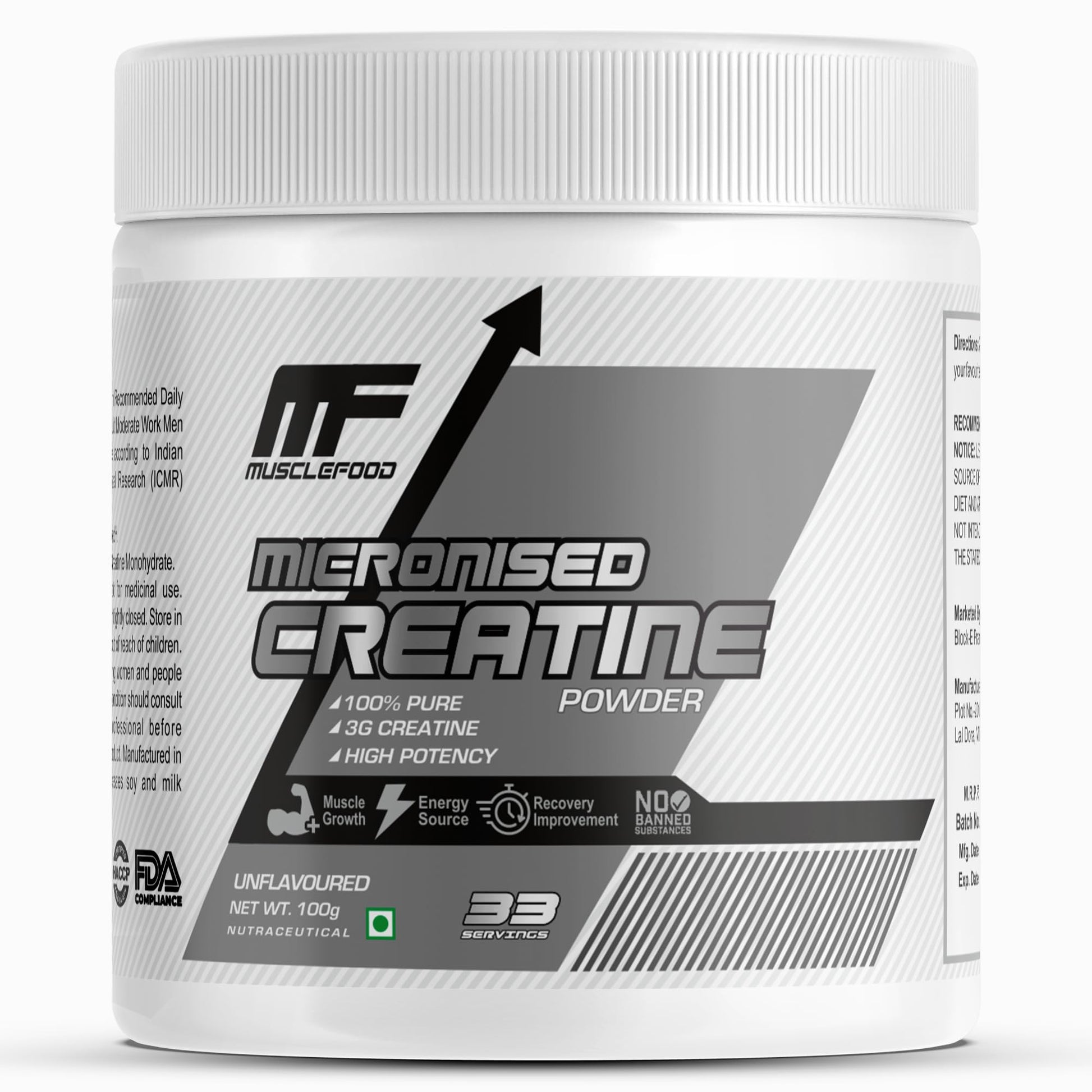 Musclefood Pure Micronised Creatine Powder | Unflavoured (100g, 33 Servings) | Supports Muscle Growth, Fast Recovery & Athletic Performance | Pre-Post workout Supplement for Men & Women | 3g Per Serve