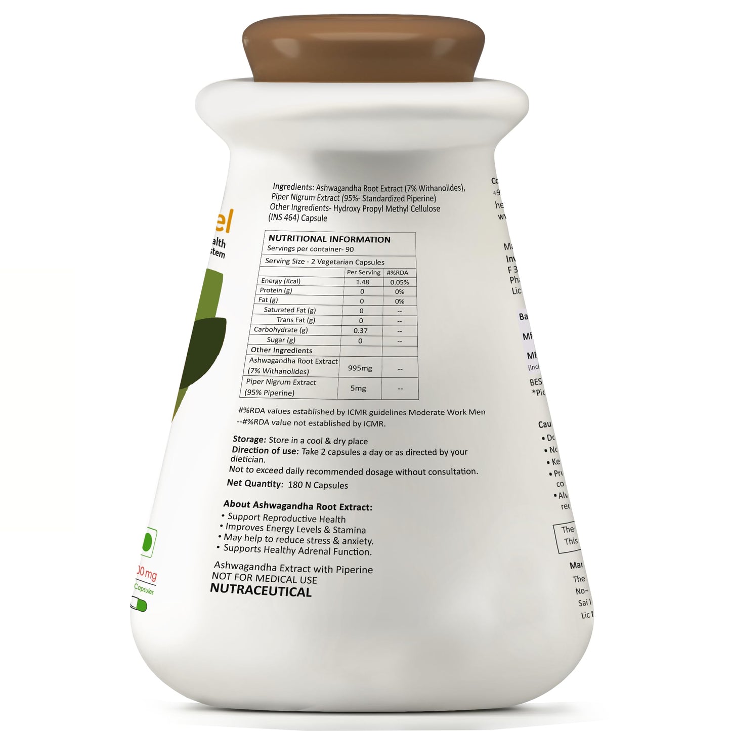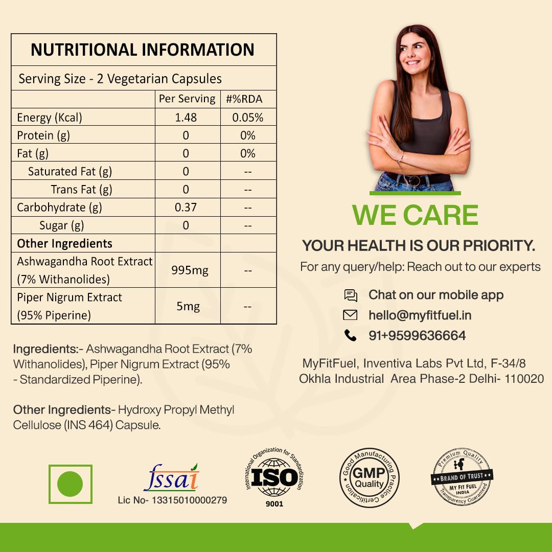- Pure Ashwagandha Extract (7% Withanolides) with Piperine (95%)
