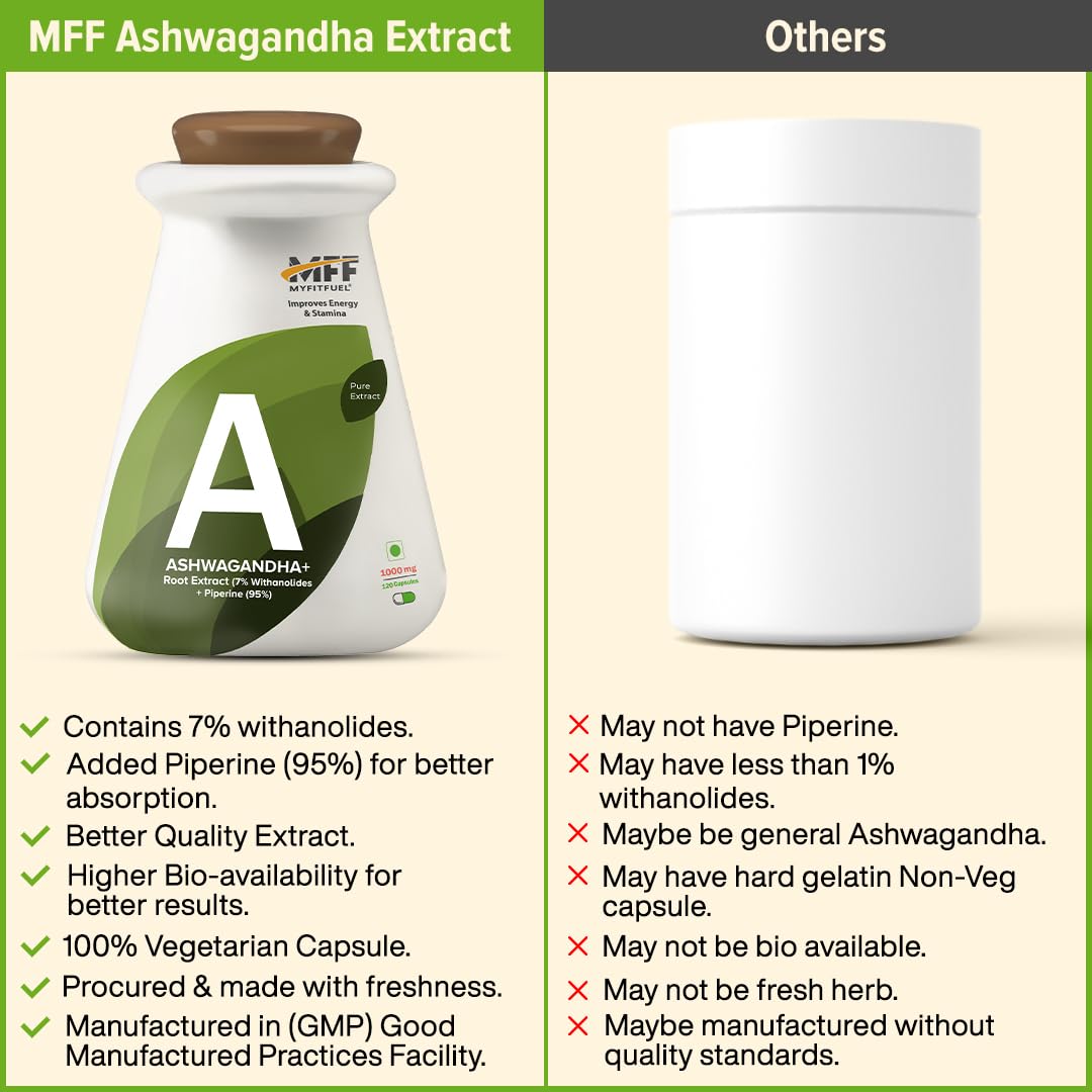 MyFitFuel Ashwagandha Root Extract (7% Withanolides) with Piperine 95%, (1000mg), 180 Capsules