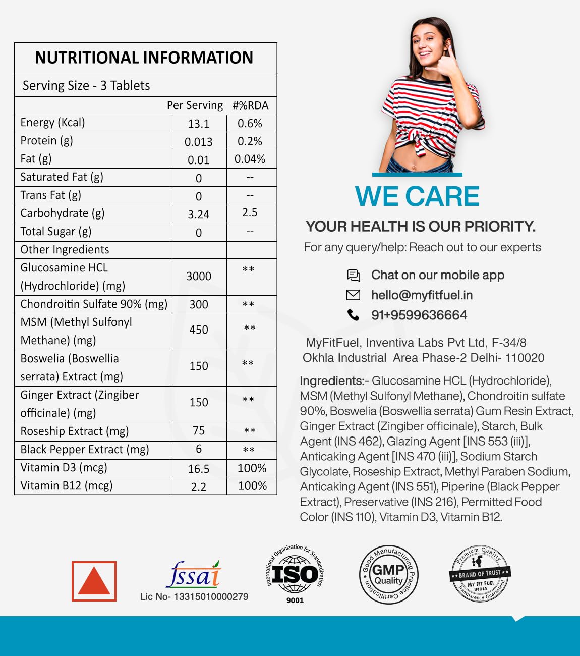 MyFitFuel Glucosamine with Chondroitin sulfate, MSM & Hyaluronic Acid, (3000mg), 120 Tablets