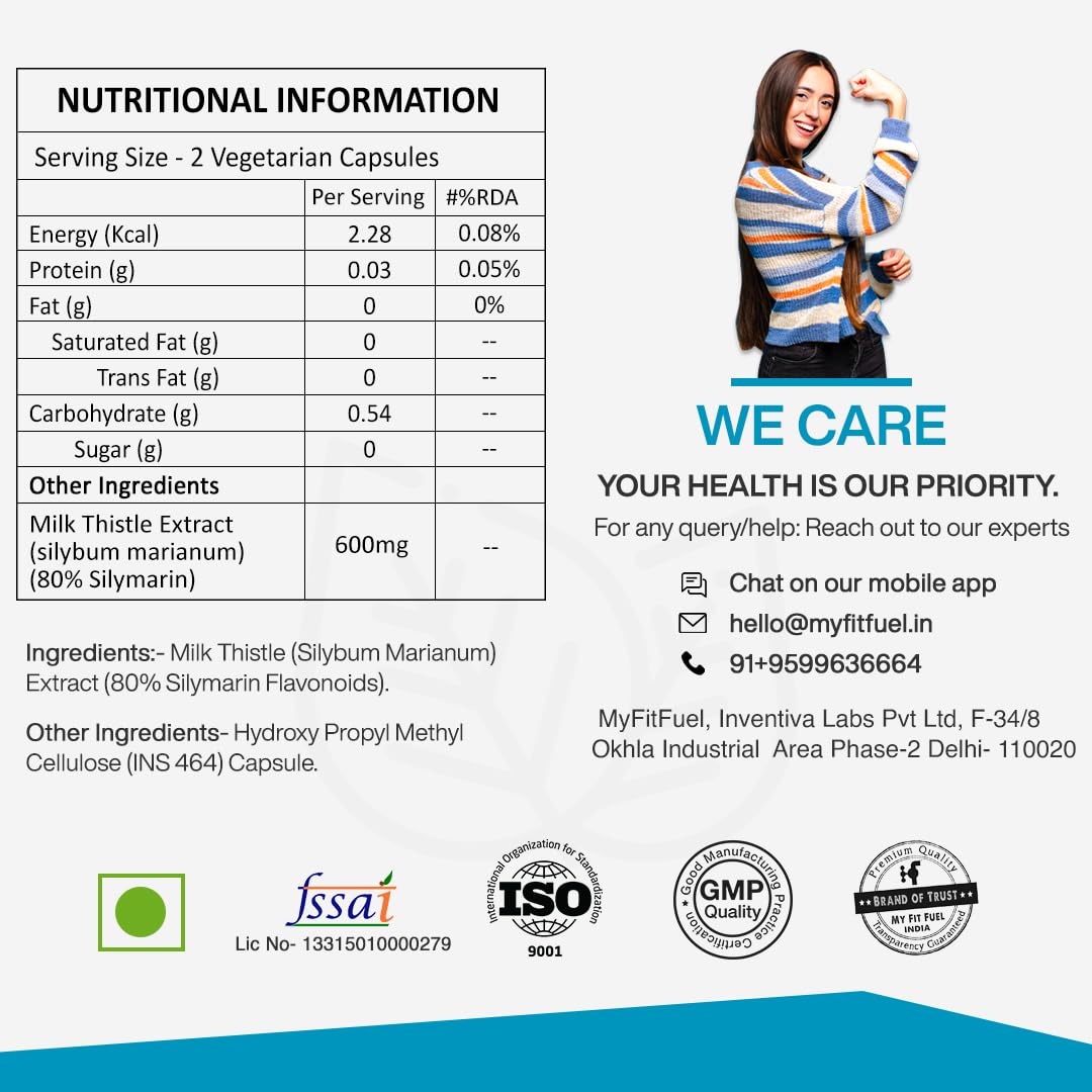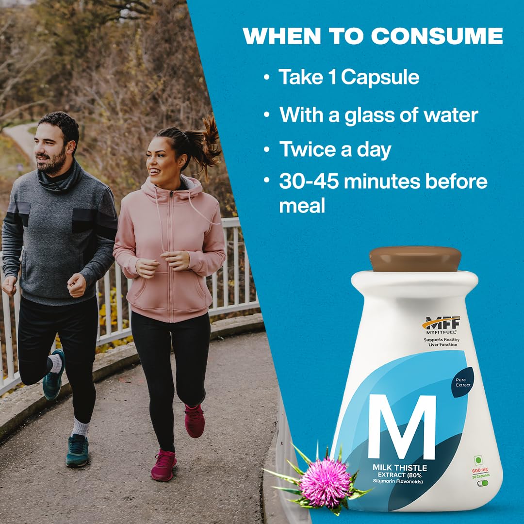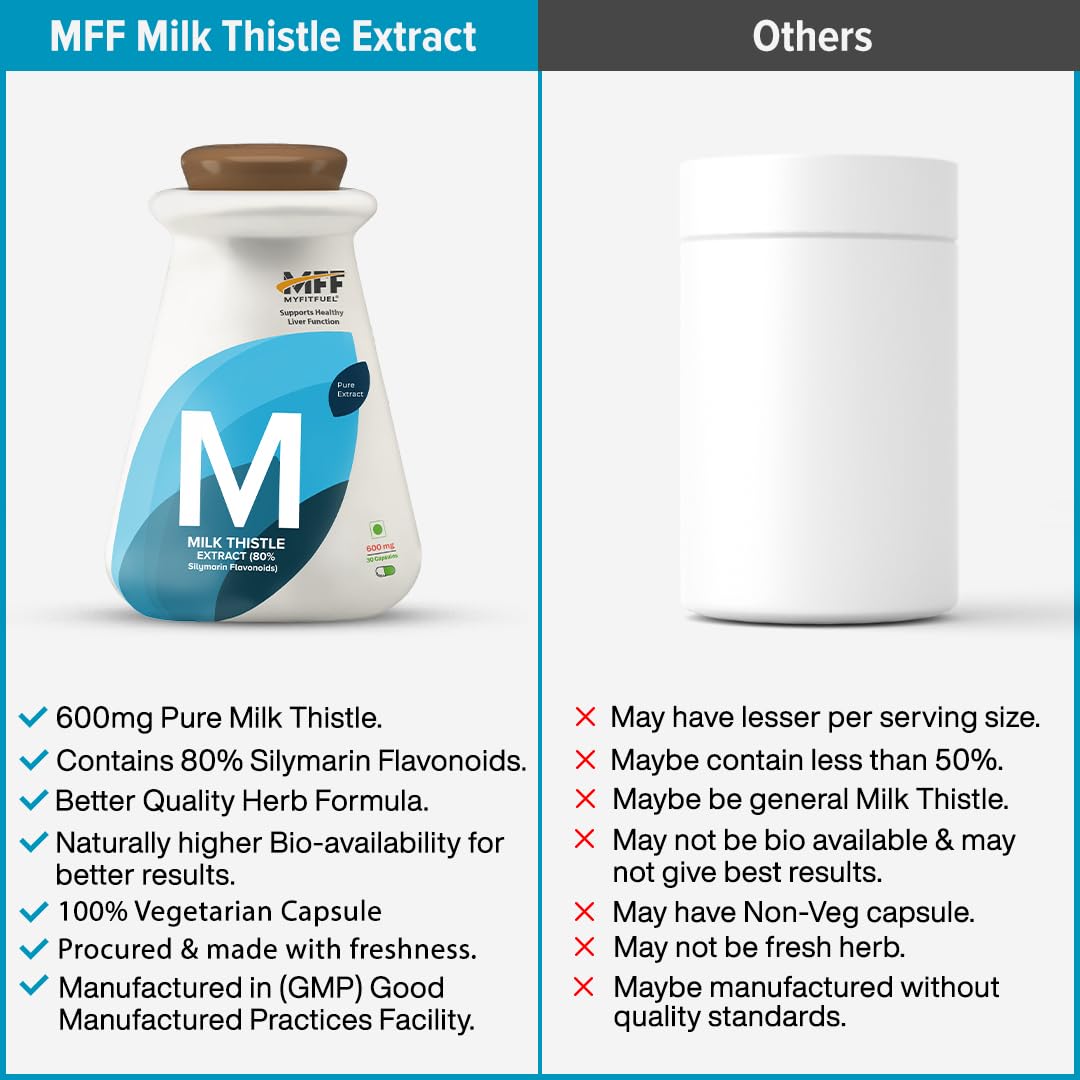 MyFitFuel Milk Thistle Extract (80% Silymarin Flavonoids), (600mg), 180 Capsules