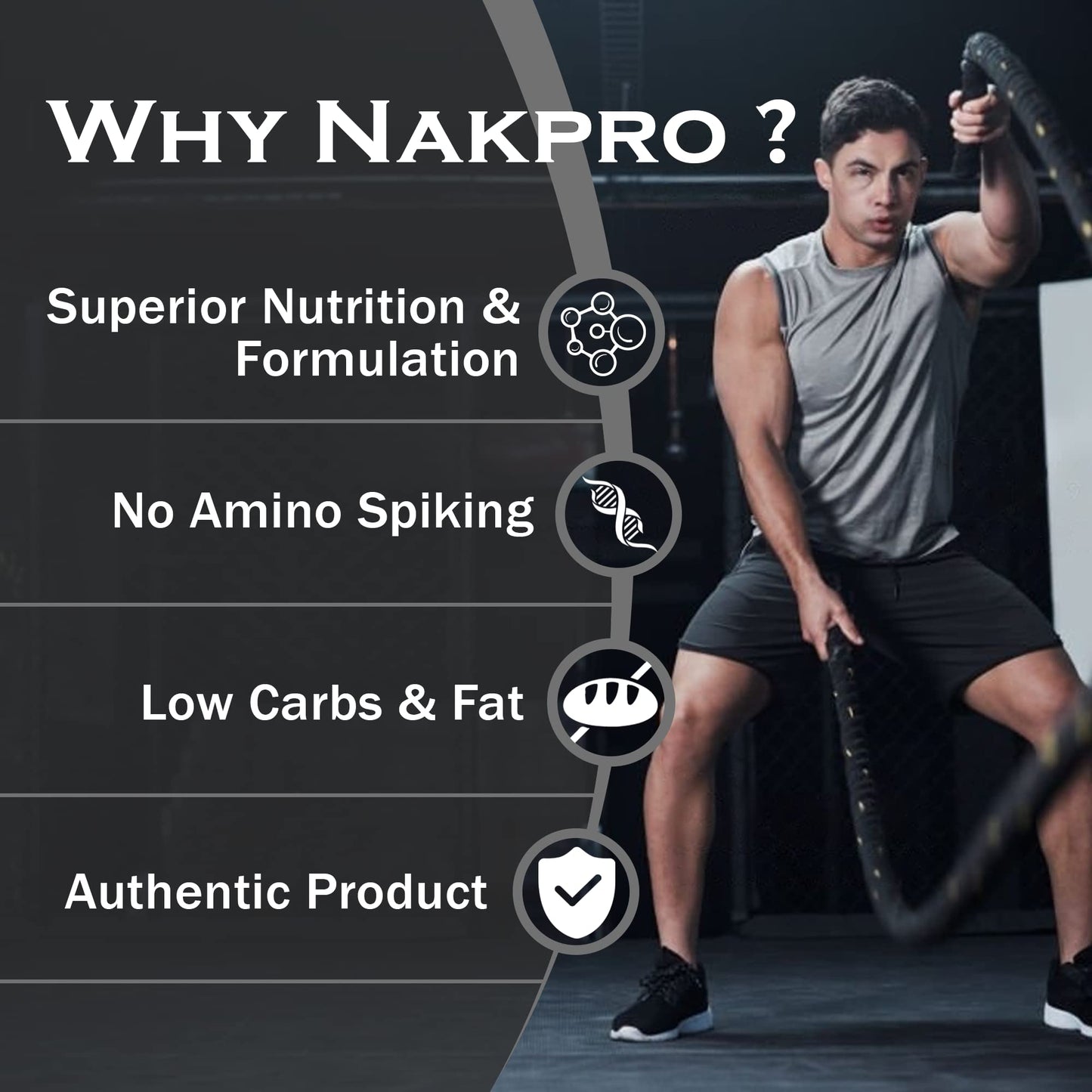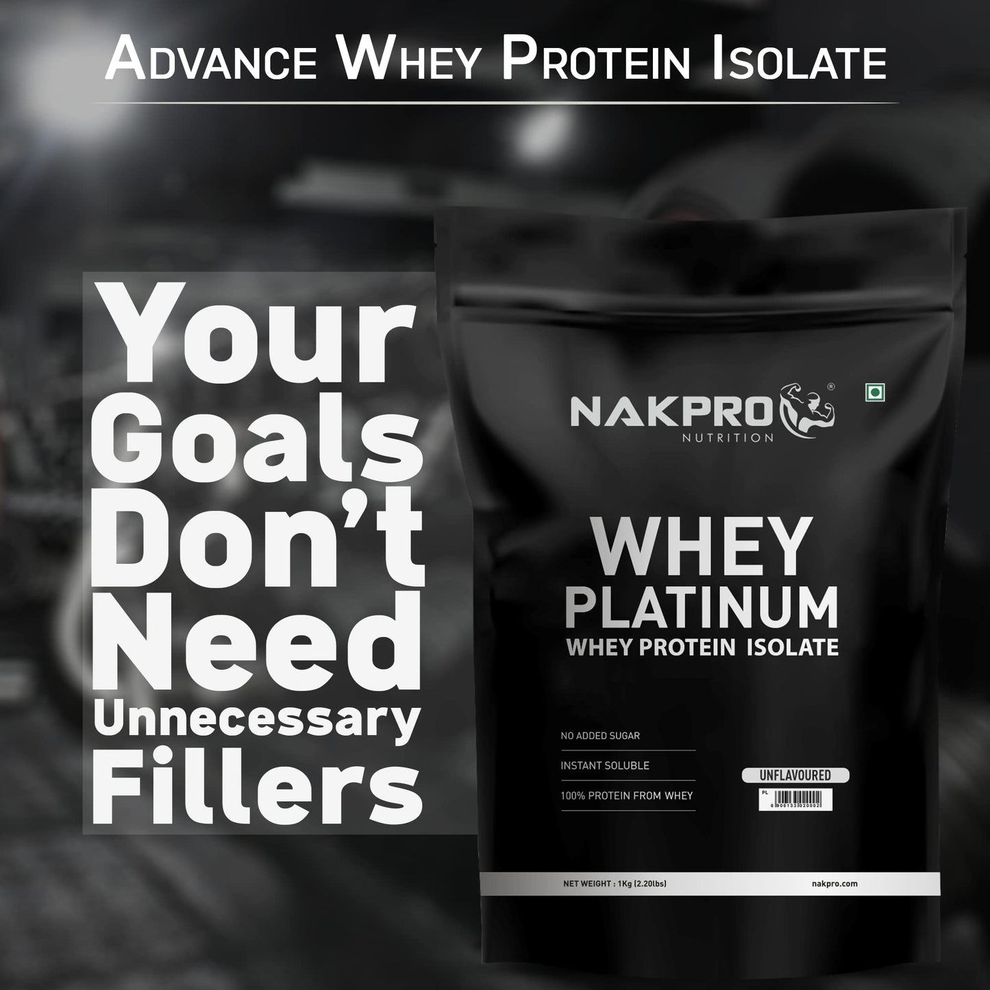 - NAKPRO PLATINUM WHEY PROTEIN is 100% Imported Whey Protein Isolate supplement powder and delivers 29.70 of protein per 33g serving size. Protein makes an essential component of your diet. Gain lean muscles like never before, with NAKPRO nutrition whey protein. Whey Protein Isolate powder contains protein in each serving which triggers the synthesis of new muscle tissues and boosts muscle recovery.