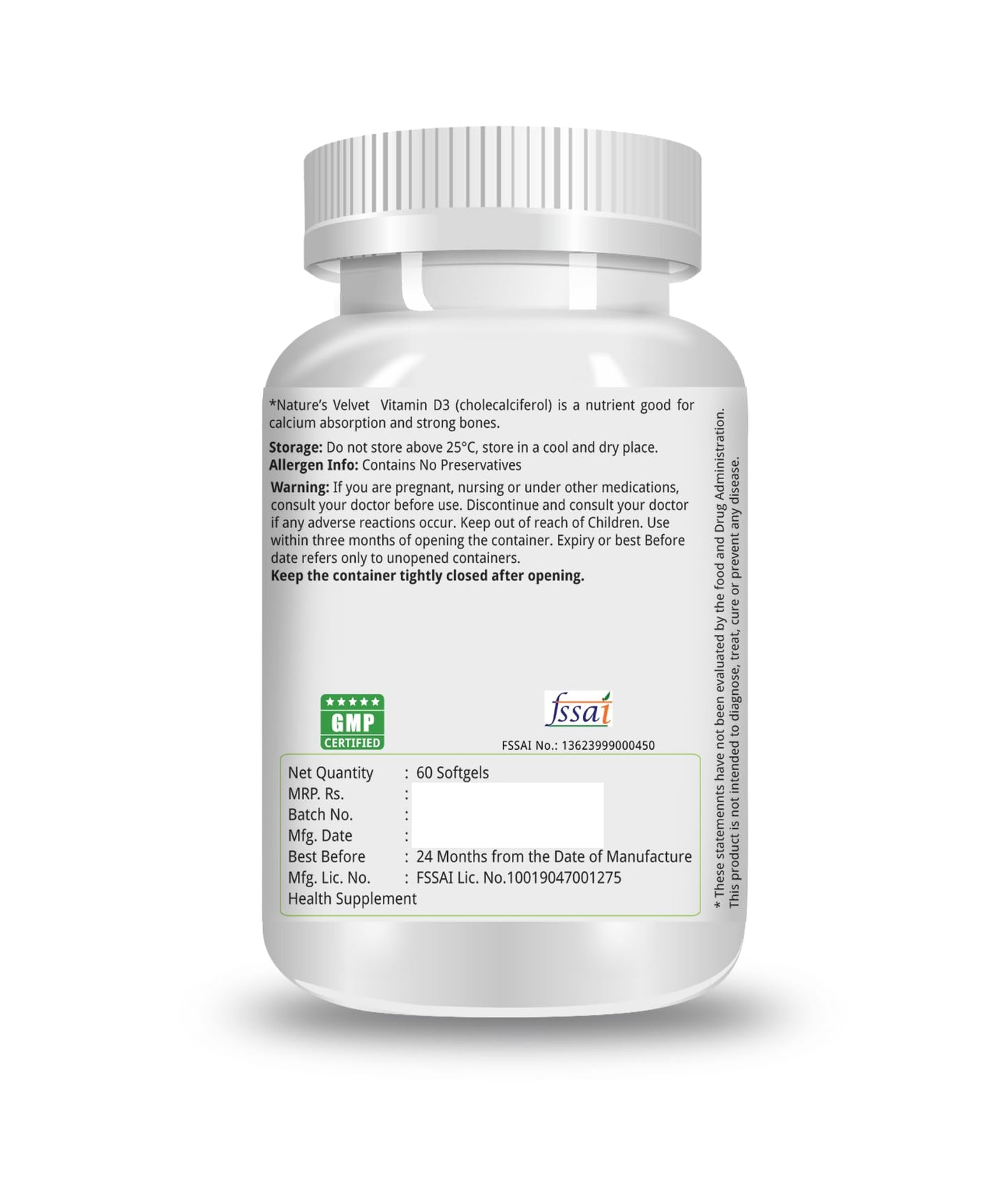 Natures Velvet Lifecare Vitamin D-3 600 IU for Bone and Teeth Health, 60 Softgels - pack of 1
