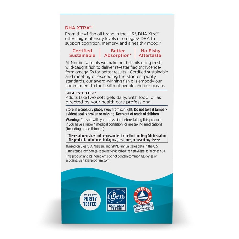 - LESS IS MORE: DHA Xtra Fish Oil is an omega-rich formula that offers increased DHA potency in fewer soft gels. With the same great fish oil as Nordic Naturals DHA supplement, DHA Xtra provides increased potency in larger 1000 mg soft gels, and is perfect for anyone needing the highest-intensity brain health and mood support.