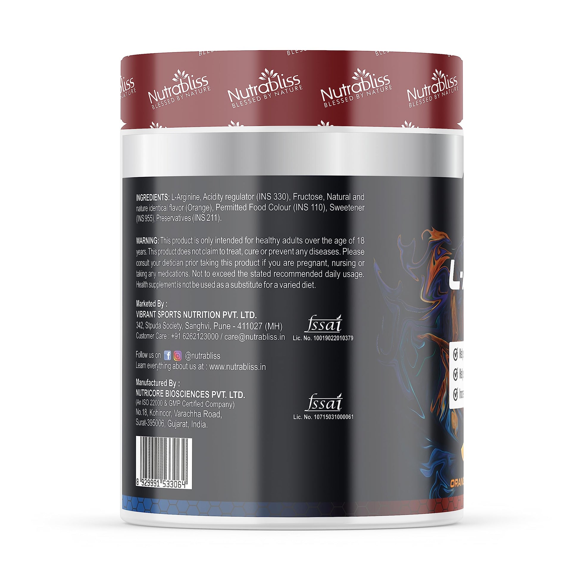 Nutrabliss L-Arginine 5000mg | Boost Nitric Oxide Levels, Enhance Muscle Recovery, Support Blood Circulation & Maintain Muscle Tissue, Amino Acid Supplement for Energy | 250 Gm Orange Flavor