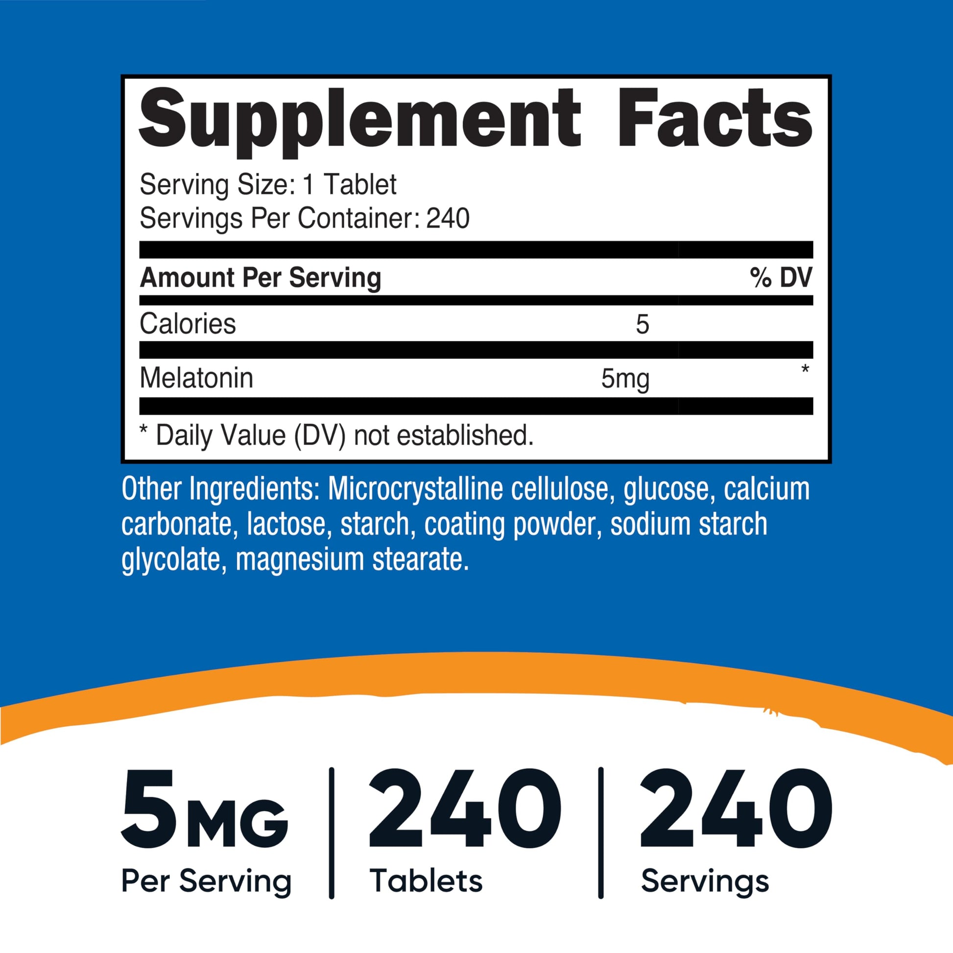 Nutricost Melatonin 5mg, 240 Tablets - 5mg Per Serving, Non-GMO, Gluten Free