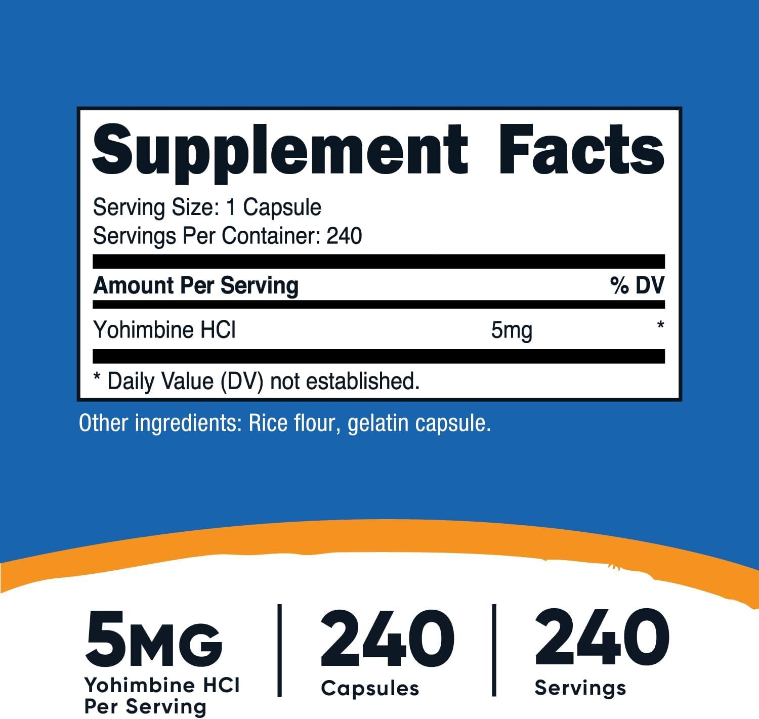 Nutricost Yohimbine HCl 5mg, 240 Capsules Gluten Free, Non-GMO, 150 grams