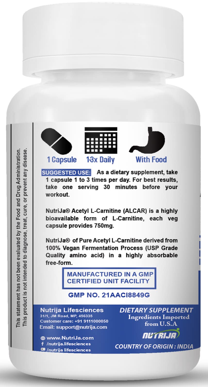 NutriJa Acetyl L-Carnitine 750mg - 60 Capsules