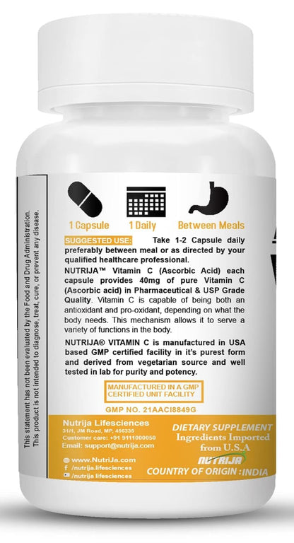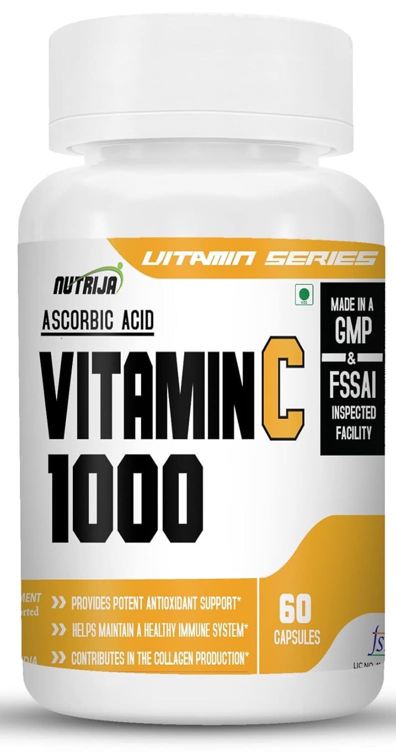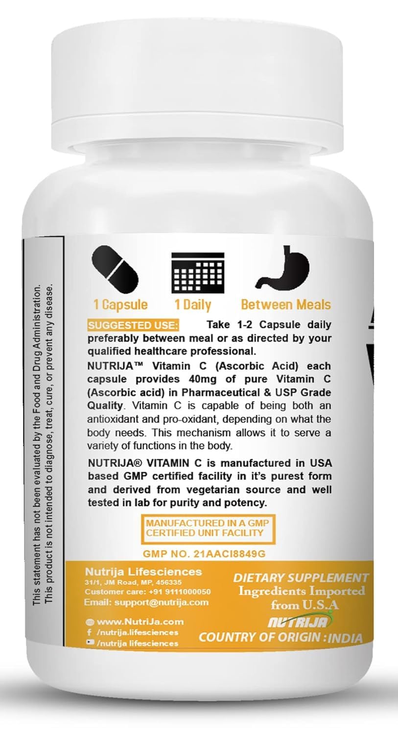 NutriJa Vitamin C/Ascorbic acid - 1000 | for immunity and increase collagen - 60 Capsules