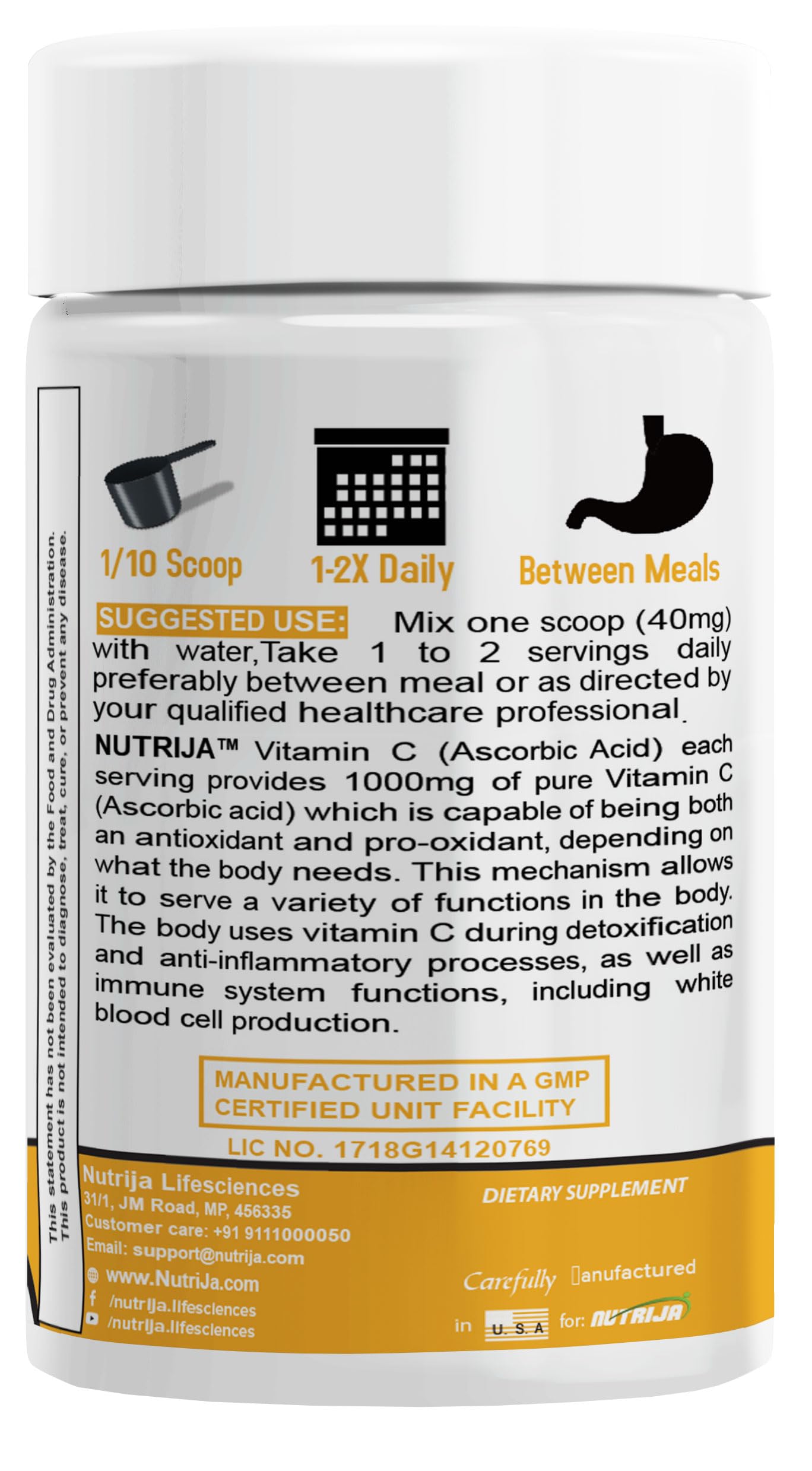 Nutrija-VITAMIN C (ASCORBIC ACID) | For immunity and collagen boost - 100 grams
