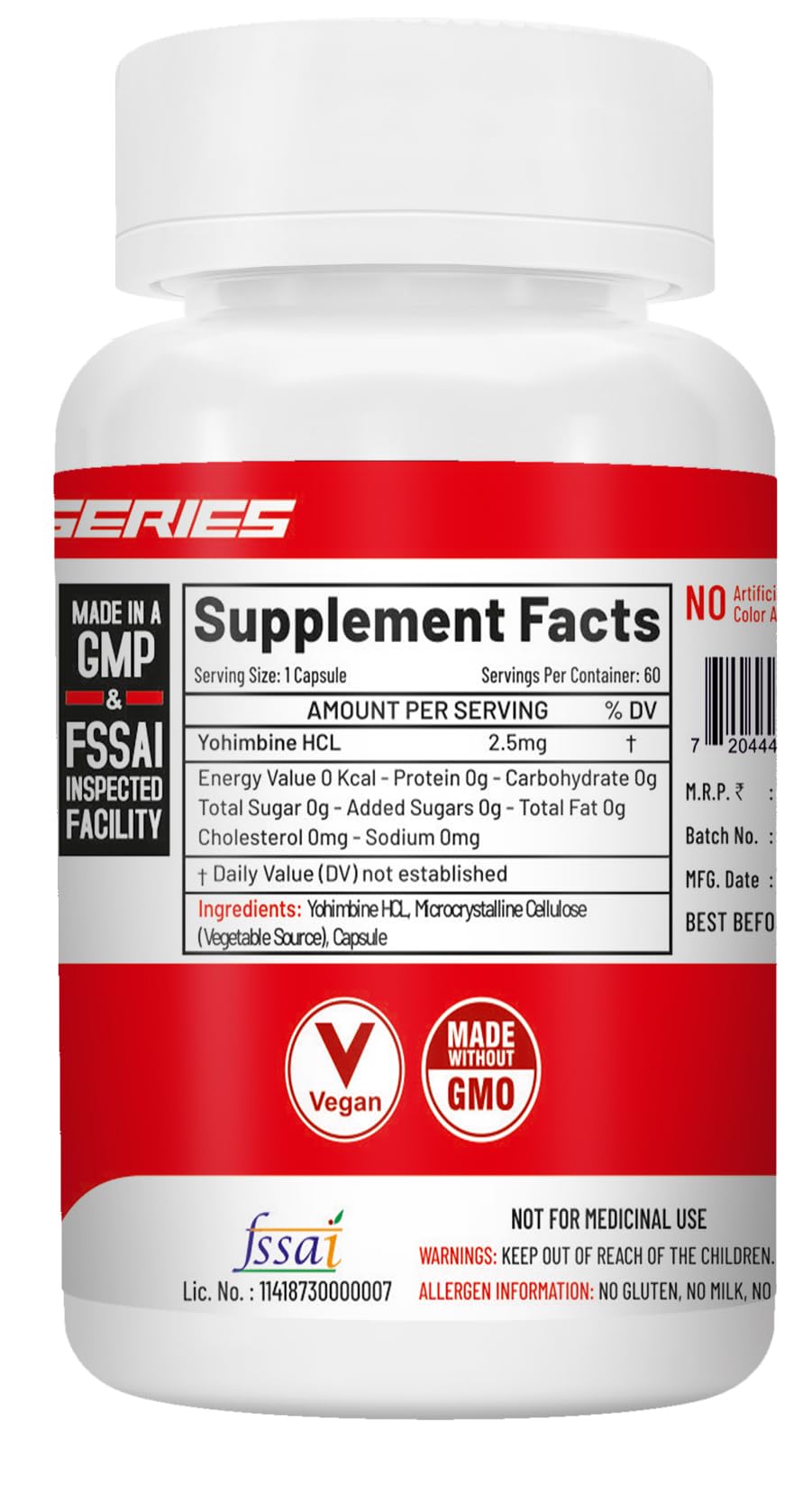 - Each capsule provides 2.5mg of pure Yohimbine HCL