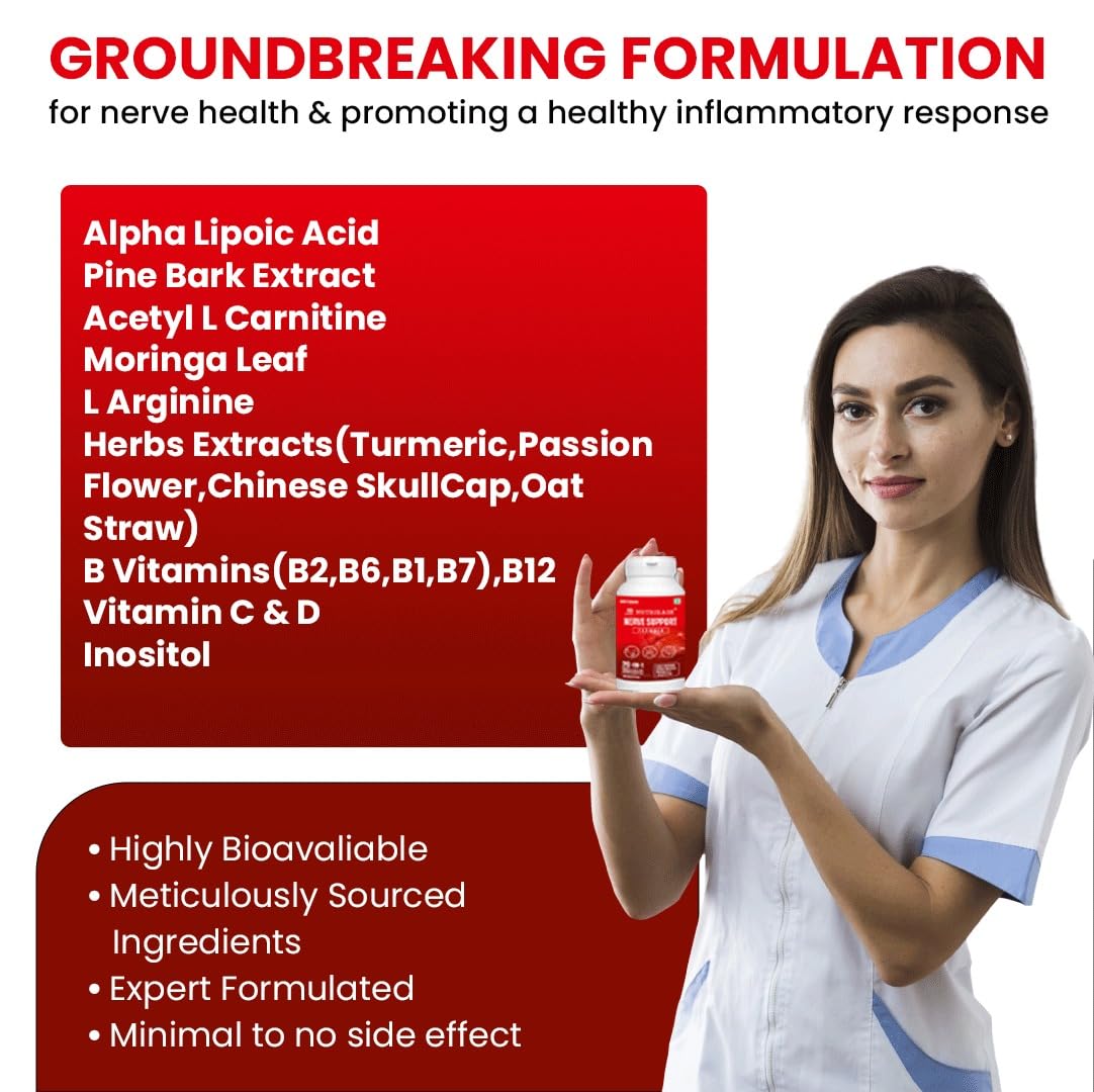 - Backed by Science - Our nerve pain supplements are developed by naturopathic specialists. Every capsule is a product of rigorous scientific health research. It is developed in the ISO,HACCP & WHO registered facility and is third-party tested.