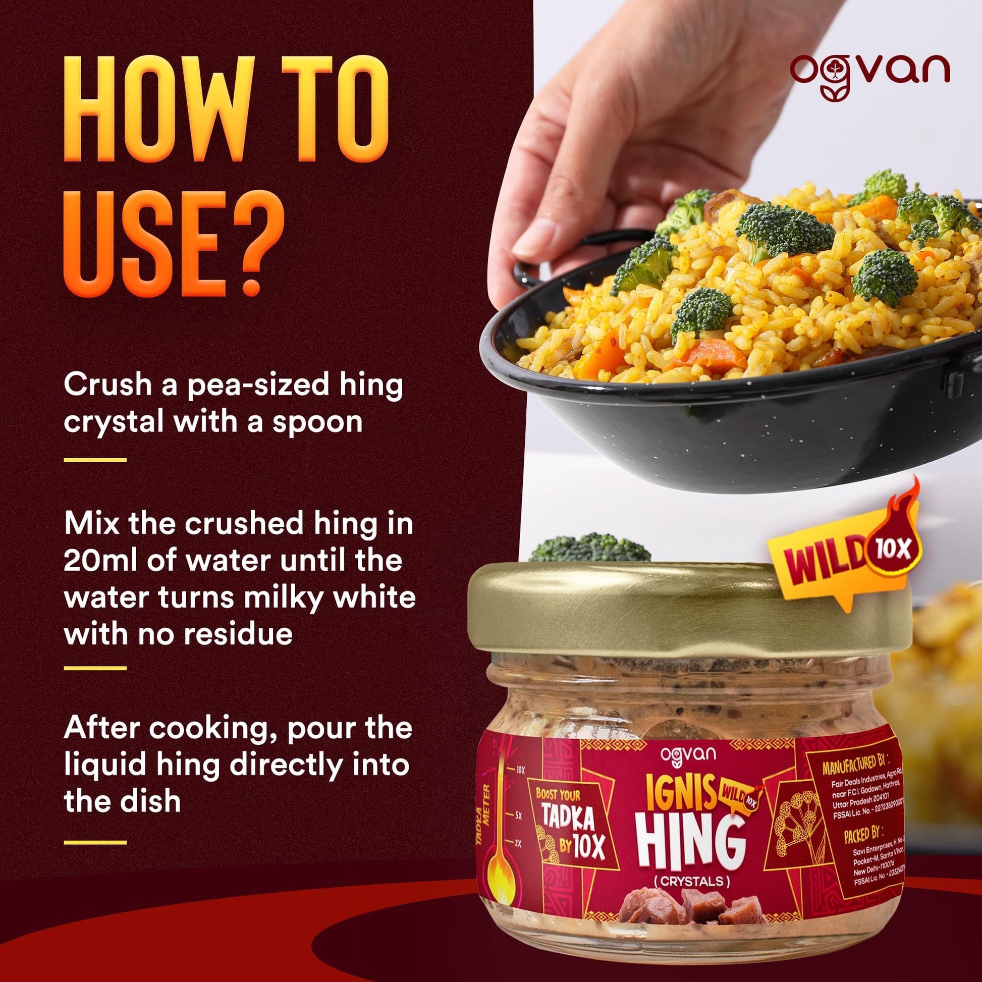 - SUPERCHARGE YOUR TADKA BY 10X: Say goodbye to bland meals! Transform your dishes with Ogvan’s strongest Ignis Hing Wild Pure Granules/Crystals, making your tadka 10 times more flavorful.