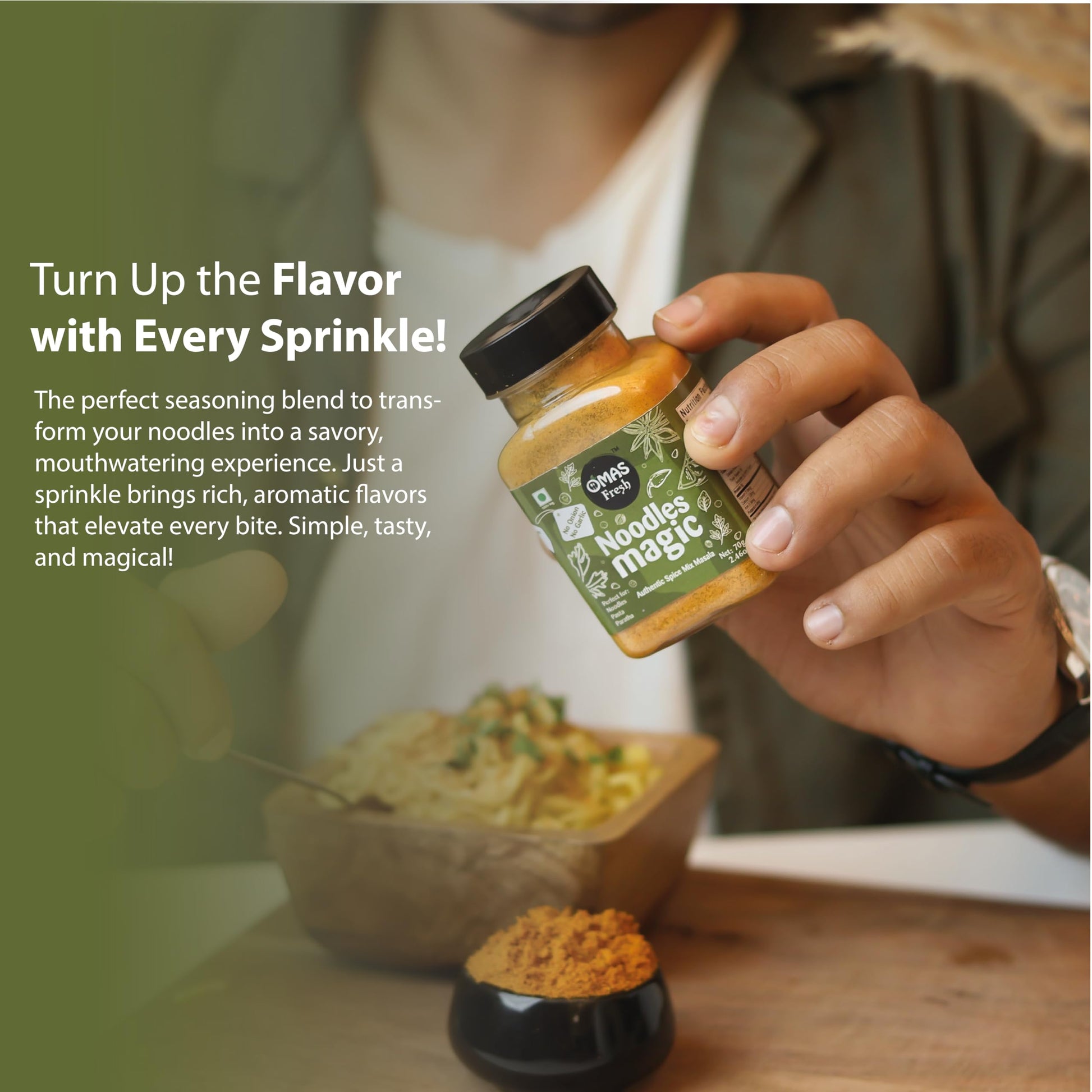 Omas Fresh No Onion, No Garlic Noodles Magic Authentic Spice Mix Masala Powder 70G | Jain Masala Best for Making Noodles, Pasta, Paratha, Wrap, 0.068 Kg