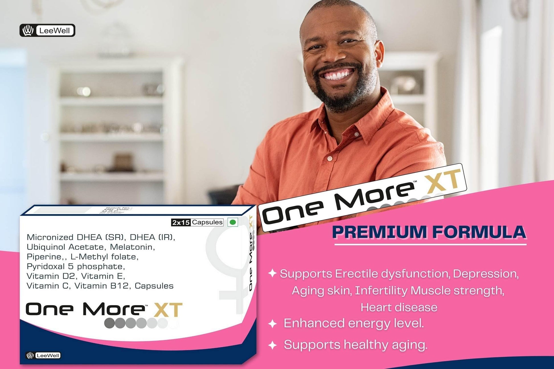 One More XT Sustained Release DHEA 75mg | Dehydroepiandrosterone 75mg (25mg IR+50mg SR) | Ubiquinol Acetate (Coenzyme Q10), Melatonin, L methyl folate, Vitamin E, C, D2, B12, B6, Piperine for men & women -30 Capsules