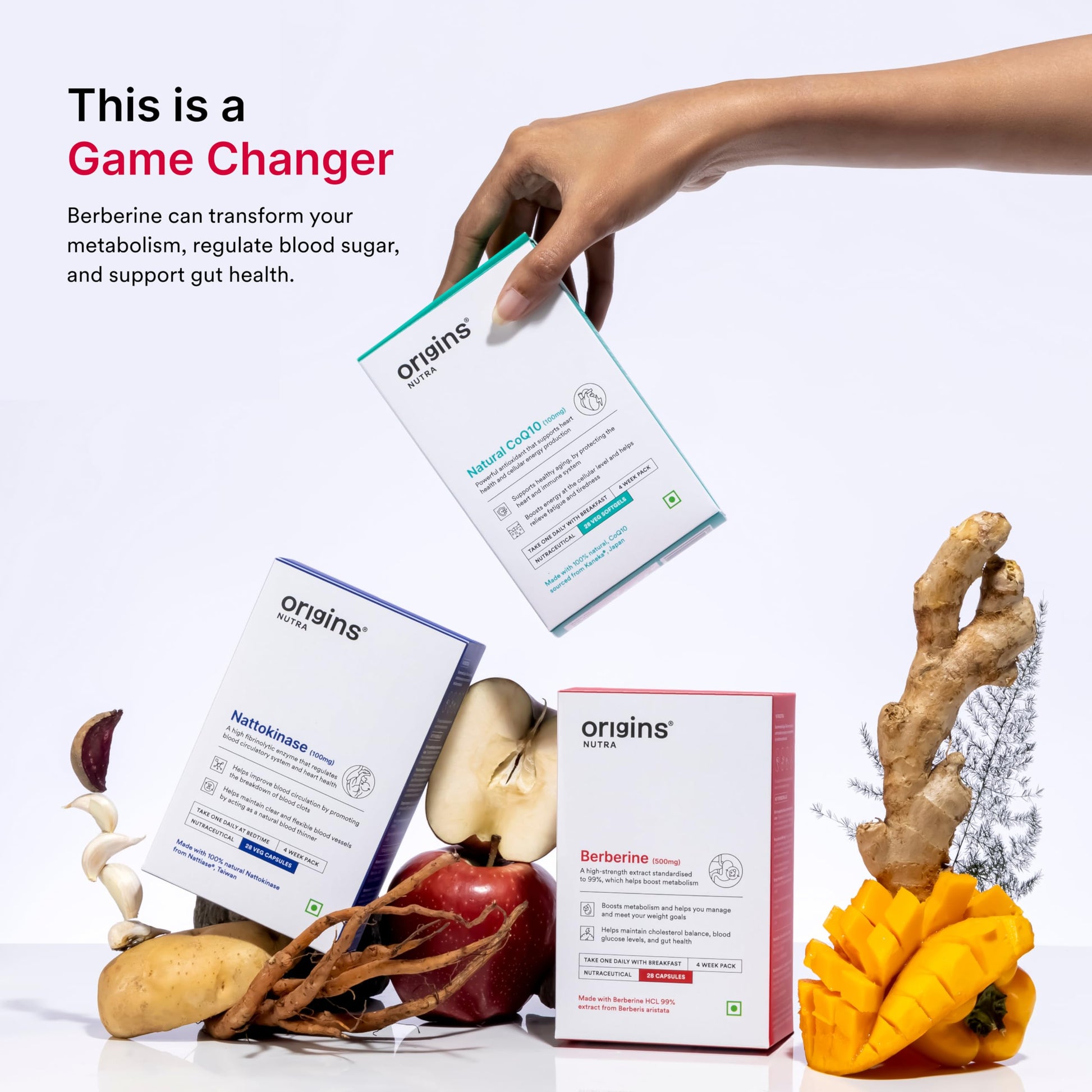 Origins Nutra 99% Pure Berberine HCL 500 mg | Supports Energy Levels, PCOS & Hormonal Balance | GMP Certified | 28 Veg Capsules | Pack of 2