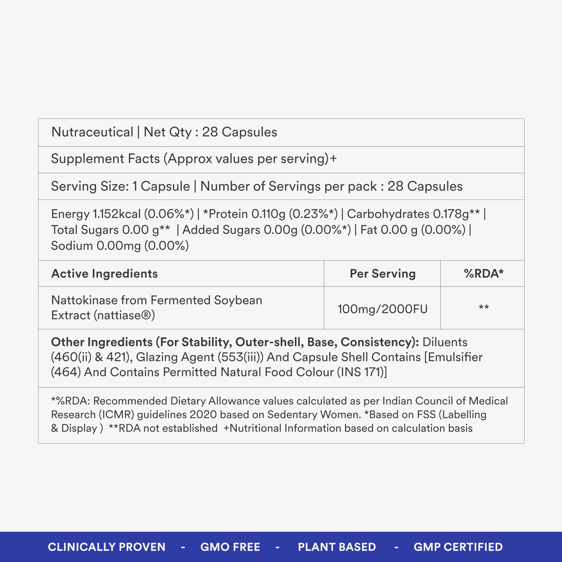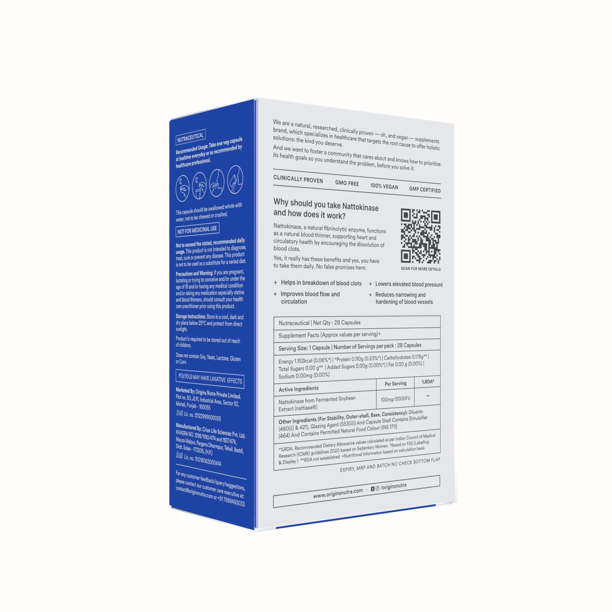 Origins Nutra Nattiaseยฎ Nattokinase 2000FU | Supports Heart Health & Smooth Circulation| GMP Certified| 28 Veg Capsules (Pack of 1)