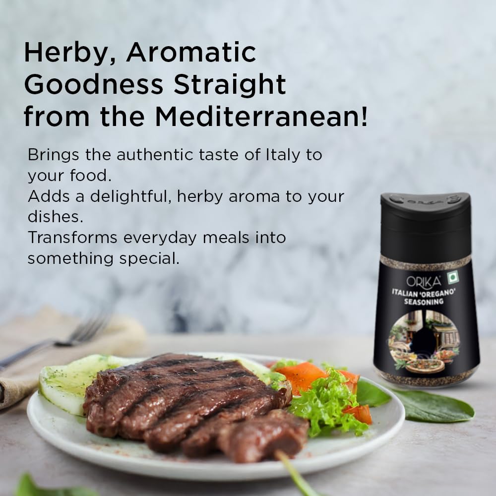 Orika Italian Seasoning 60g | Oregano Seasoning For Pizza, Pasta, Garlic Bread & Italian Food | Classic Blend Of Italian Mixed Herbs | Moisture Resistant Sprinkler Jar | No Artificial Flavours and Colours